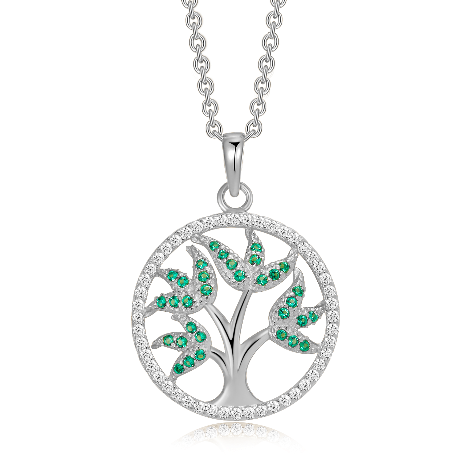 - Vedhæng: Livets træ med 4 grene og grønne syntetiske cubic zirconia