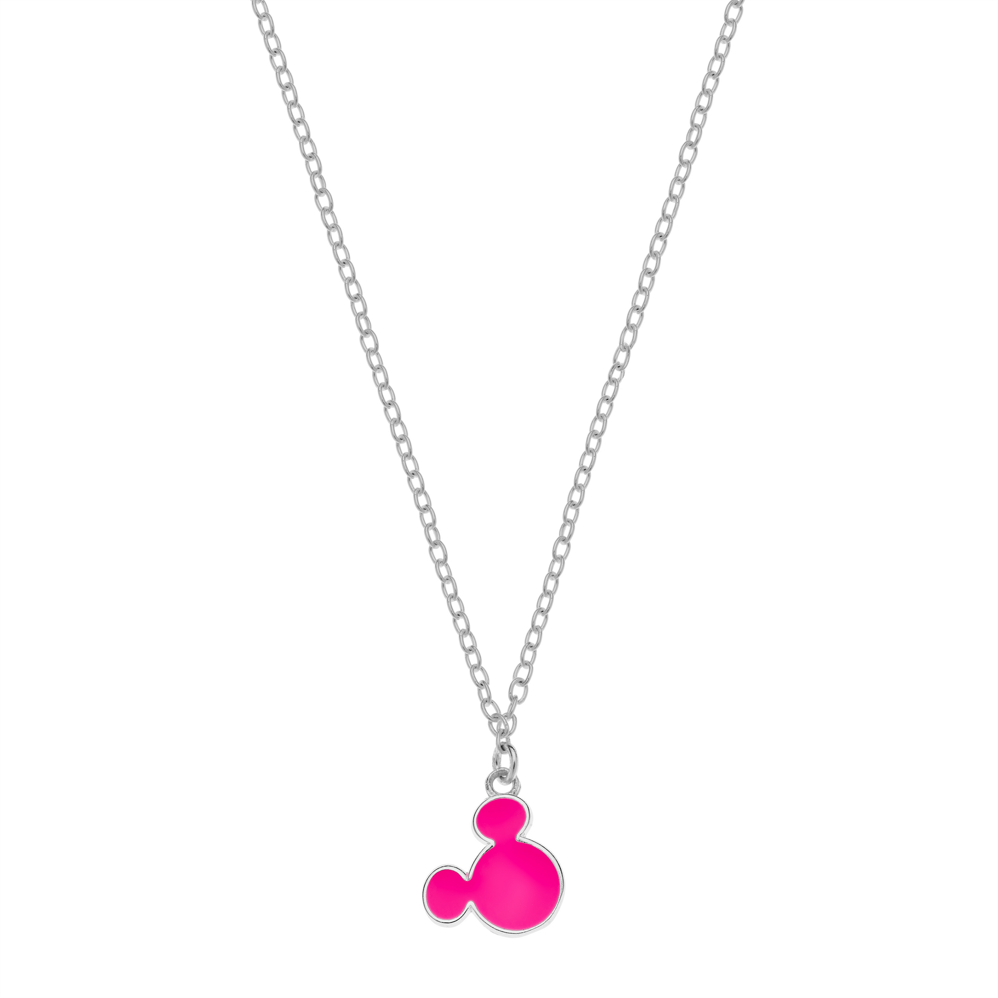 Sød og iøjnefaldende sølvhalskæde med et charmerende Mickey Mouse vedhæng i pink design, der viser hele ansigtet. Smykket kombinerer legesyge og elegance på fineste vis og er perfekt til både børn og voksne, der elsker Disney’s klassiske figur. Den rhodinerede overflade giver ekstra glans og beskytter mod anløbning. Et sjovt og stilfuldt smykke, der spreder glæde i hverdagen.