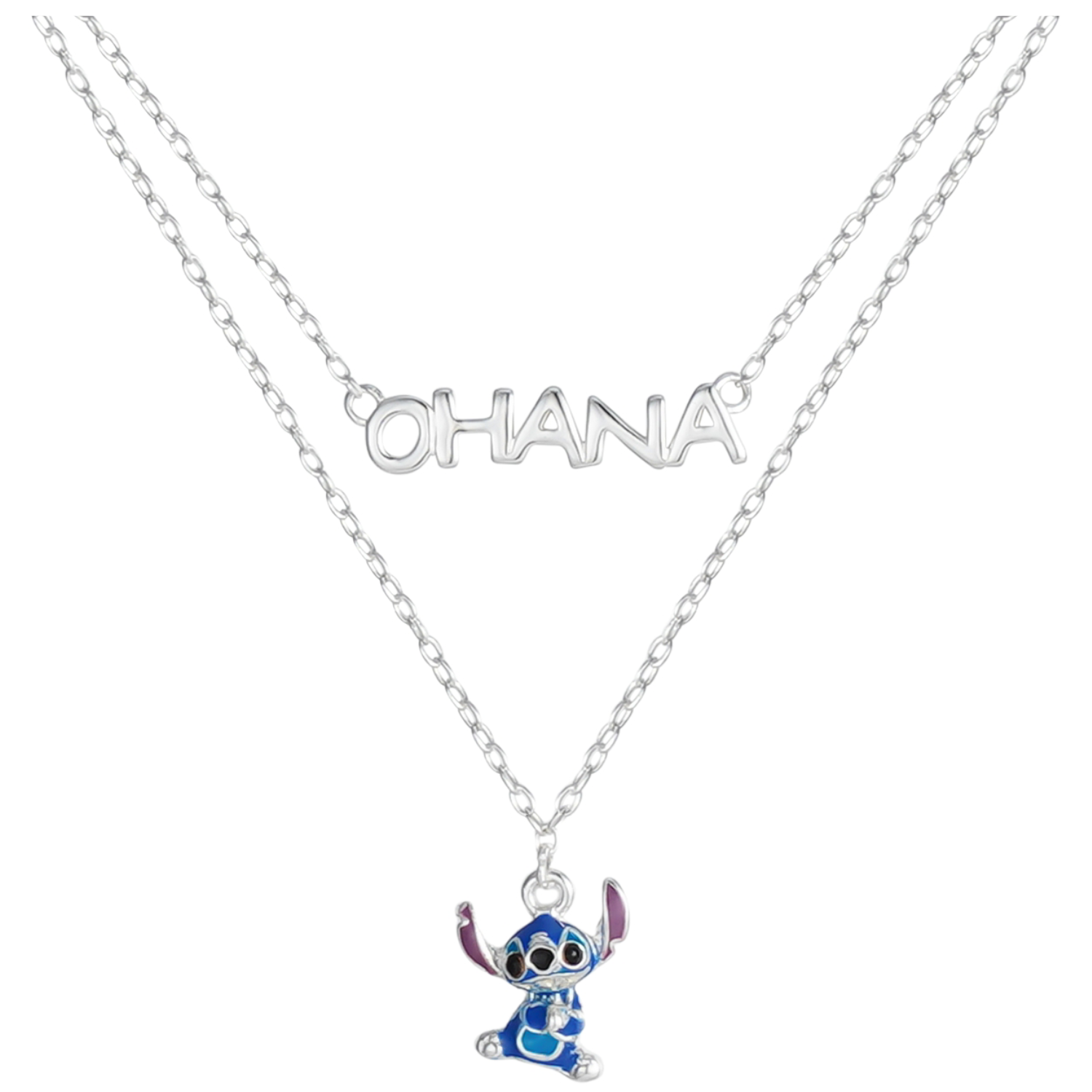 Sød og unik sølvhalskæde med motiv af Stitch og teksten “OHANA”, som symboliserer familie og samhørighed. Halskæden har et moderne design med dobbelt kæde, der giver et elegant og legende udtryk. Fremstillet i sterlingsølv med fine detaljer, perfekt til både børn og voksne, der elsker Disney-universet. Et meningsfuldt smykke, der minder om kærlighed og fællesskab.