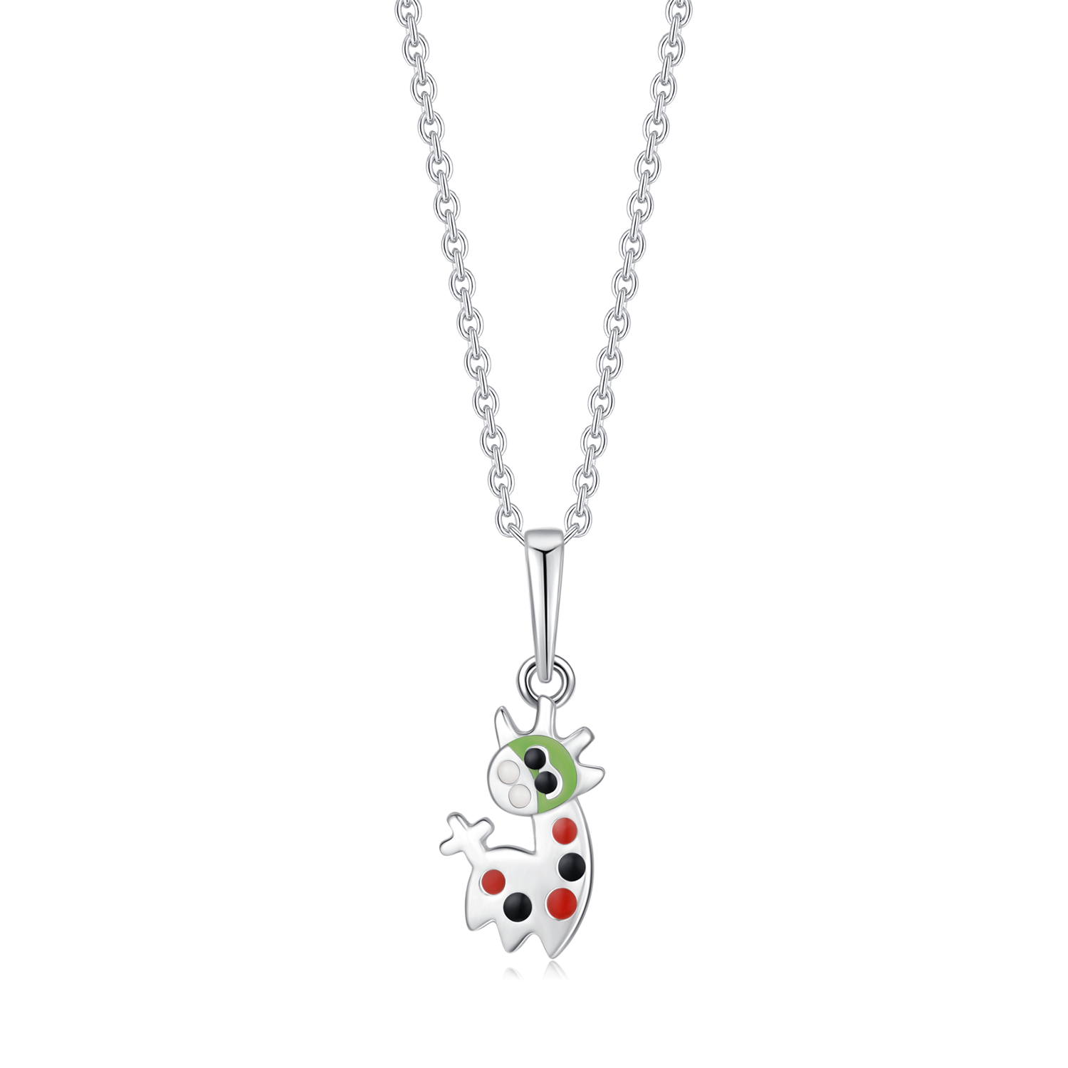 Sød og farverig sølvhalskæde i rhodineret sterlingsølv med et charmerende girafvedhæng. Giraffens krop er dekoreret med blyfri emalje i forskellige farver, som giver et livligt og legende udtryk. Den rhodinerede overflade beskytter mod anløbning og sikrer langvarig glans. Et perfekt smykke til børn eller dyreelskere, der sætter pris på søde og farverige detaljer.
