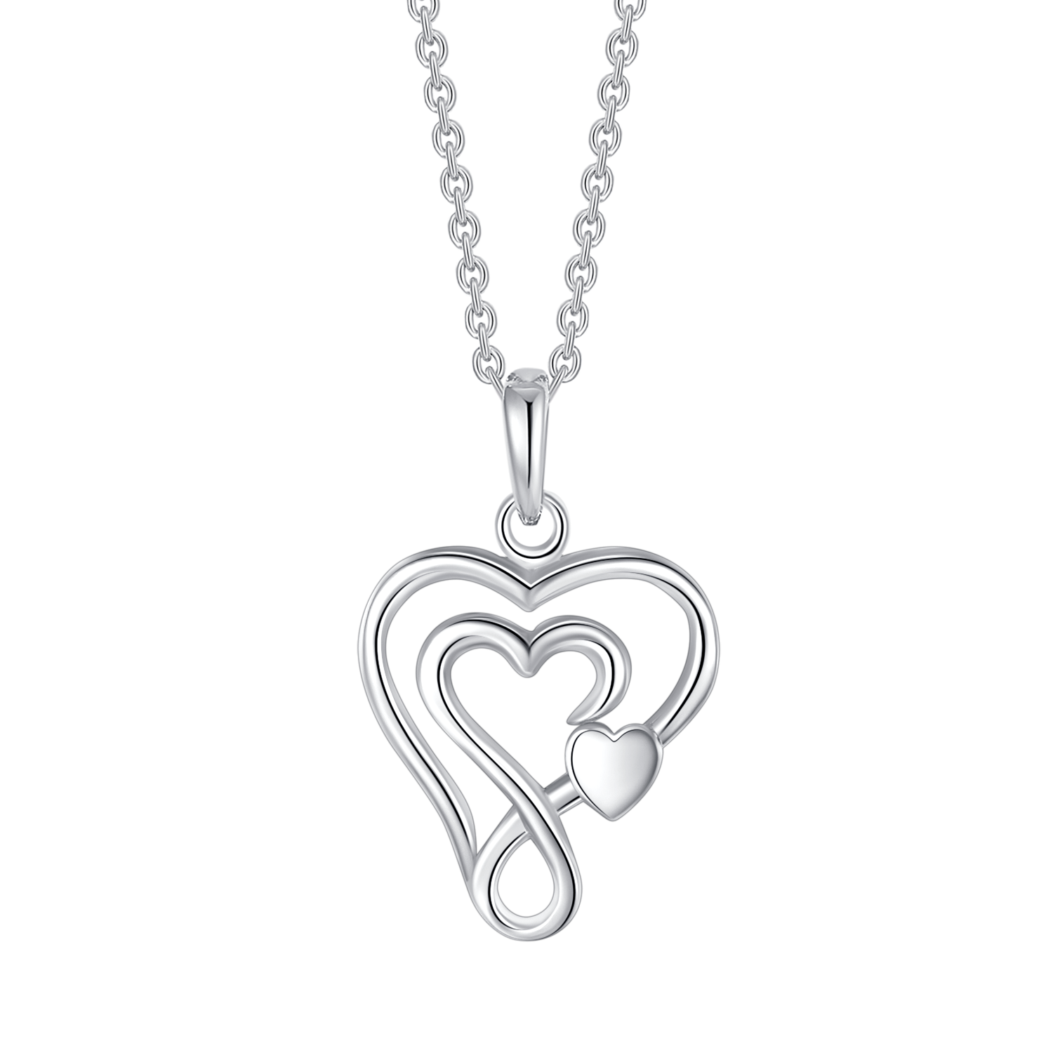 Denne elegante sølv halskæde præsenterer et rhodineret design med dobbelt åbne hjerter, hvor et lille hjerte er lukket og placeret i kanten. Vedhænget måler 19 x 17 mm og er lavet af rhodineret sølv for en smuk og holdbar finish. Kæden er justerbar med en længde på 42-45 cm, hvilket gør den ideel til både dagligt brug og specielle anledninger.
