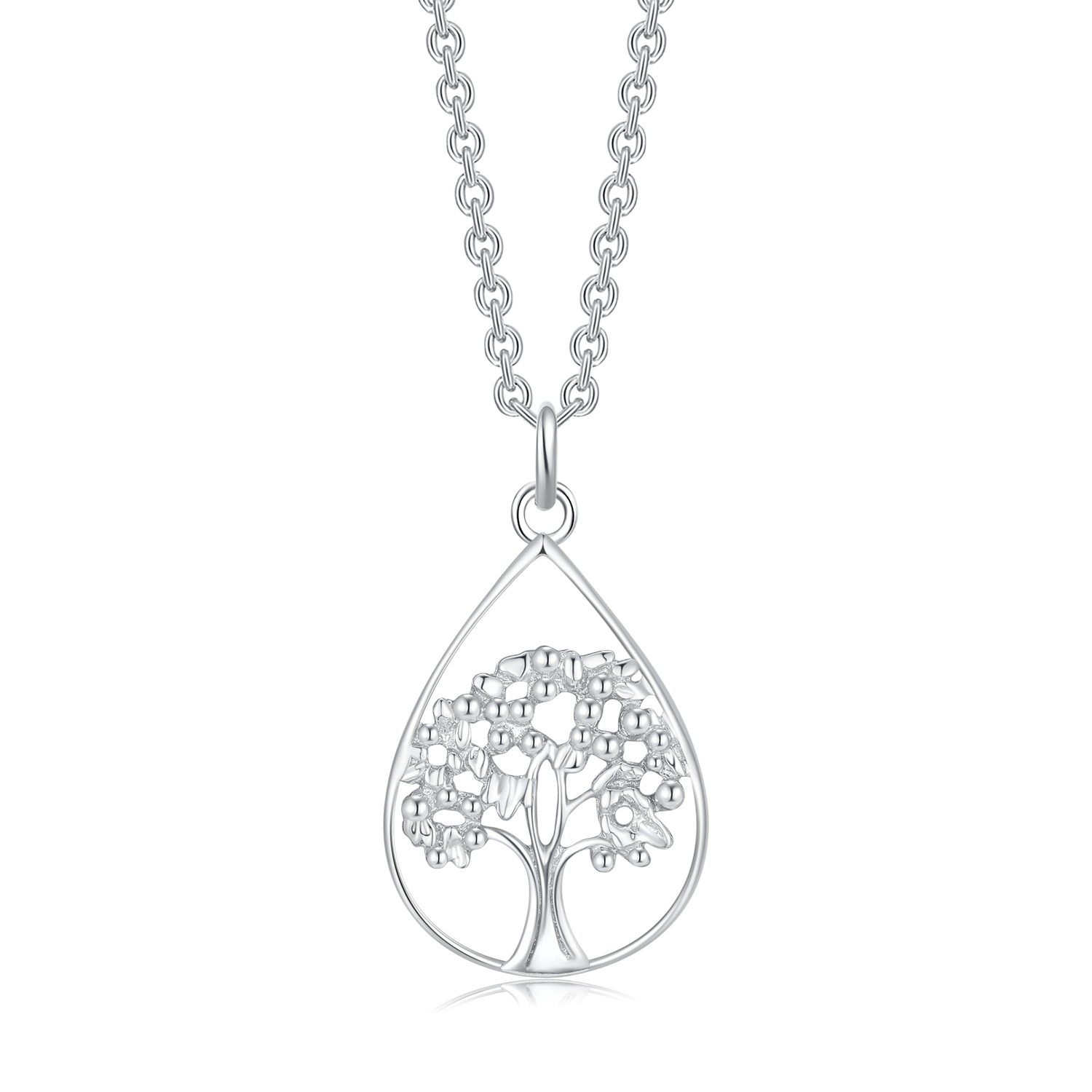 Denne elegante sølv halskæde har en rhodineret dårbe med et smukt livets træ (Tree of Life) design, der symboliserer styrke og vækst. Vedhænget måler 25 x 19 mm og er lavet af rhodineret sølv, hvilket giver et skinnende og holdbart finish. Kæden har en justerbar længde på 42-45 cm, hvilket gør den ideel til både dagligt brug og specielle lejligheder.