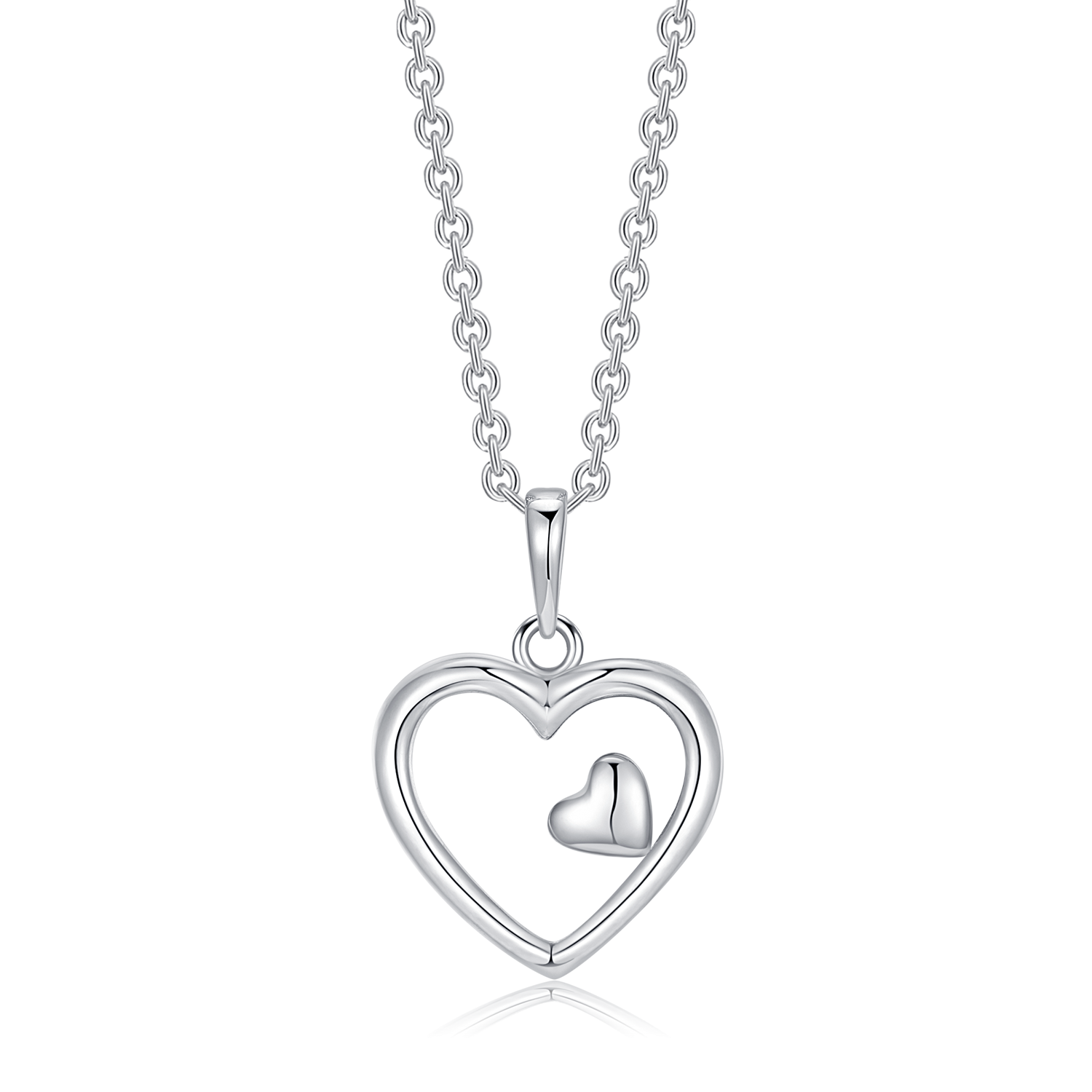 Smuk og rørende sølvhalskæde i rhodineret sterlingsølv med et elegant hjertevedhæng, der symboliserer mor og barn. I kanten af det store hjerte sidder et lille lukket hjerte, som repræsenterer kærlighed og samhørighed. Den rhodinerede overflade giver ekstra glans og beskytter mod anløbning. Et meningsfuldt smykke – perfekt som gave til en mor eller et særligt familiemedlem.
