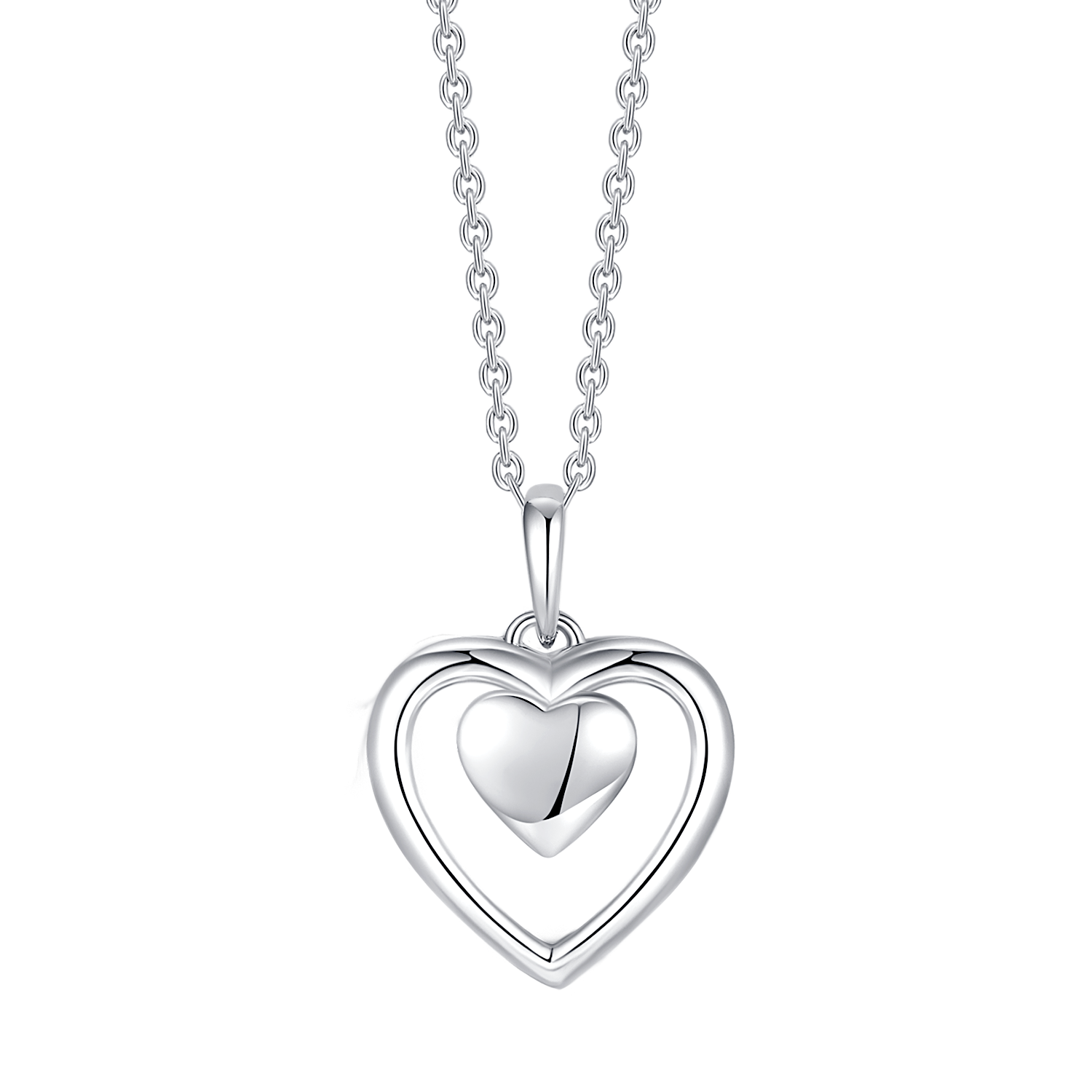 Denne smukke sølv halskæde har et rhodineret hjerte design med et symbol på mor og barn. Det lille lukket hjerte er placeret i toppen af det større, åbne hjerte, hvilket giver et kærligt og elegant udtryk. Kæden er lavet af rhodineret sølv og har en justerbar længde på 42-45 cm, perfekt til både hverdag og specielle lejligheder.