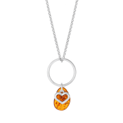 Sølv halskæde rhodineret cirkel med rav og hjerte.