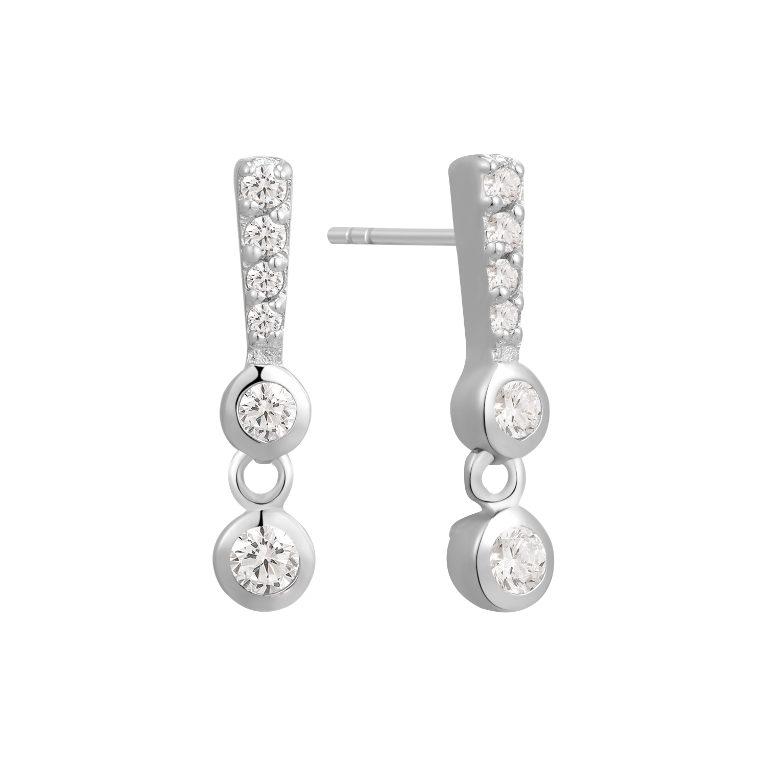 Elegant sølv ørehænger med et moderne og stilrent udtryk. Designet består af en rhodineret, aflang pind prydet med funklende syntetiske cubic zirconia, der giver et eksklusivt skær. Den slanke form fremhæver hals og ansigt på smukkeste vis, mens den rhodinerede overflade beskytter mod misfarvning. Et perfekt valg til både hverdagsbrug og festlige anledninger.