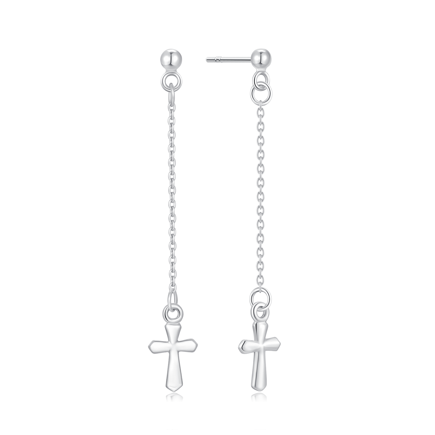 Elegant og tidløs sølv ørehænger med et smukt rhodineret design. Øreringen består af en fin kæde, hvor et klassisk kors pryder enden og tilfører et stilrent og symbolsk udtryk. Den rhodinerede overflade giver ekstra glans og beskytter mod misfarvning, hvilket gør smykket ideelt til både daglig brug og særlige anledninger. Et diskret, men betydningsfuldt smykke.