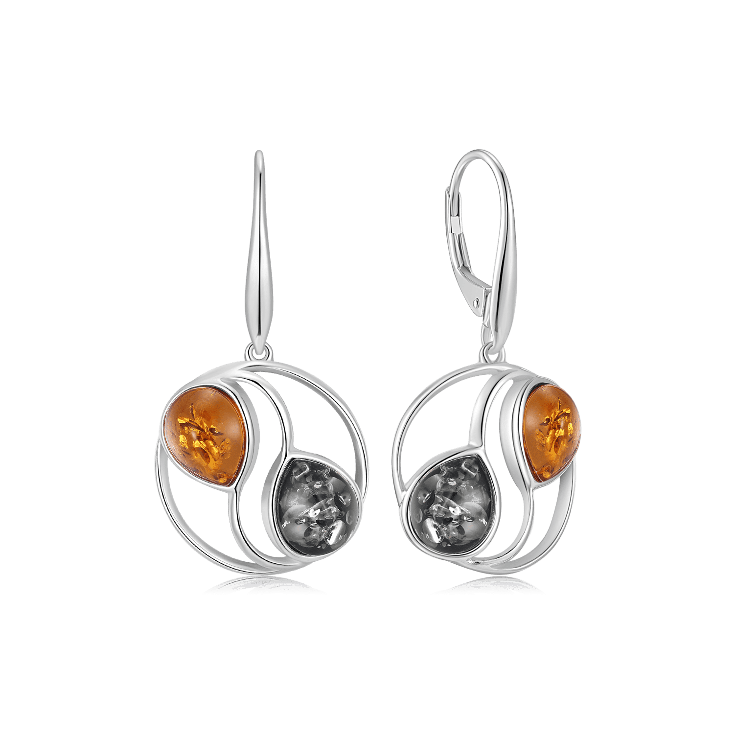 Disse elegante sølv ørehængere er designet i en smuk rhodineret cirkelform, der kombinerer to kontrastfyldte sten: varm rav og dyb sort agat. Samspillet mellem de naturlige farver skaber et stilfuldt og moderne udtryk, som passer perfekt til både hverdag og festlige lejligheder. Ørehængerne udstråler klassisk elegance med et strejf af naturens skønhed og tidløs charme.