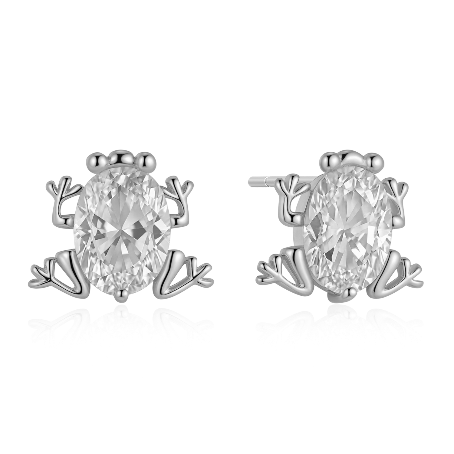 Disse søde og elegante sølv ørestikker har et unikt design formet som en frø, der giver et legende og charmerende udtryk. Ørestikkerne er rhodinerede for at bevare glansen og modstå anløbning, mens de funklende syntetiske cubic zirconia-sten tilføjer et strejf af luksus. Et smykke, der kombinerer humor og stil – perfekt til både hverdag og særlige lejligheder.