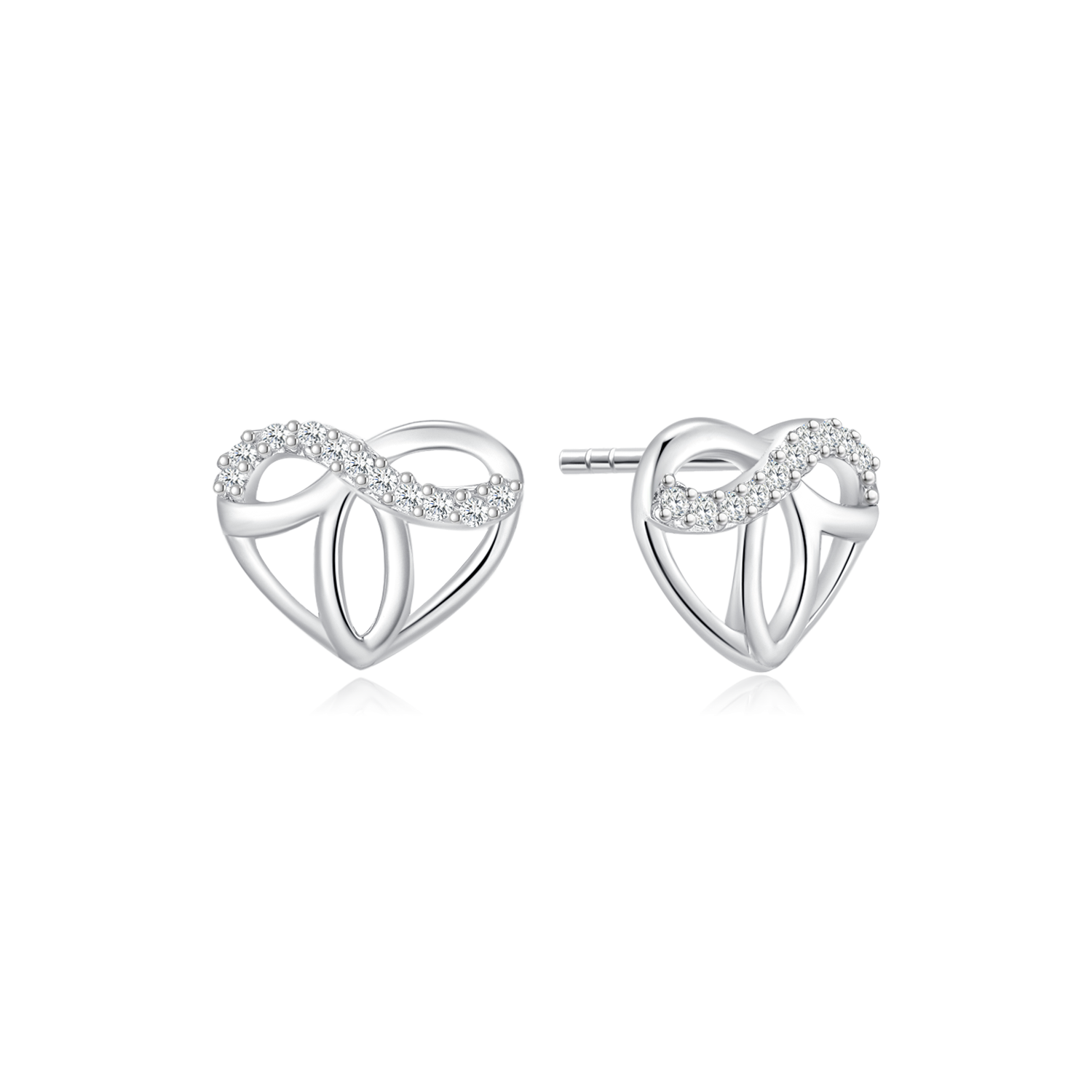 Disse elegante sølv ørestikker er designet med et smukt rhodineret hjerte, der symboliserer kærlighed og stil. I midten af hjertet findes et dekorativt øje, som tilfører et unikt og moderne udtryk. Langs den øverste kant prydes smykket af funklende syntetiske cubic zirconia-sten, der fanger lyset på smukkeste vis. Et tidløst valg til både hverdag og fest.