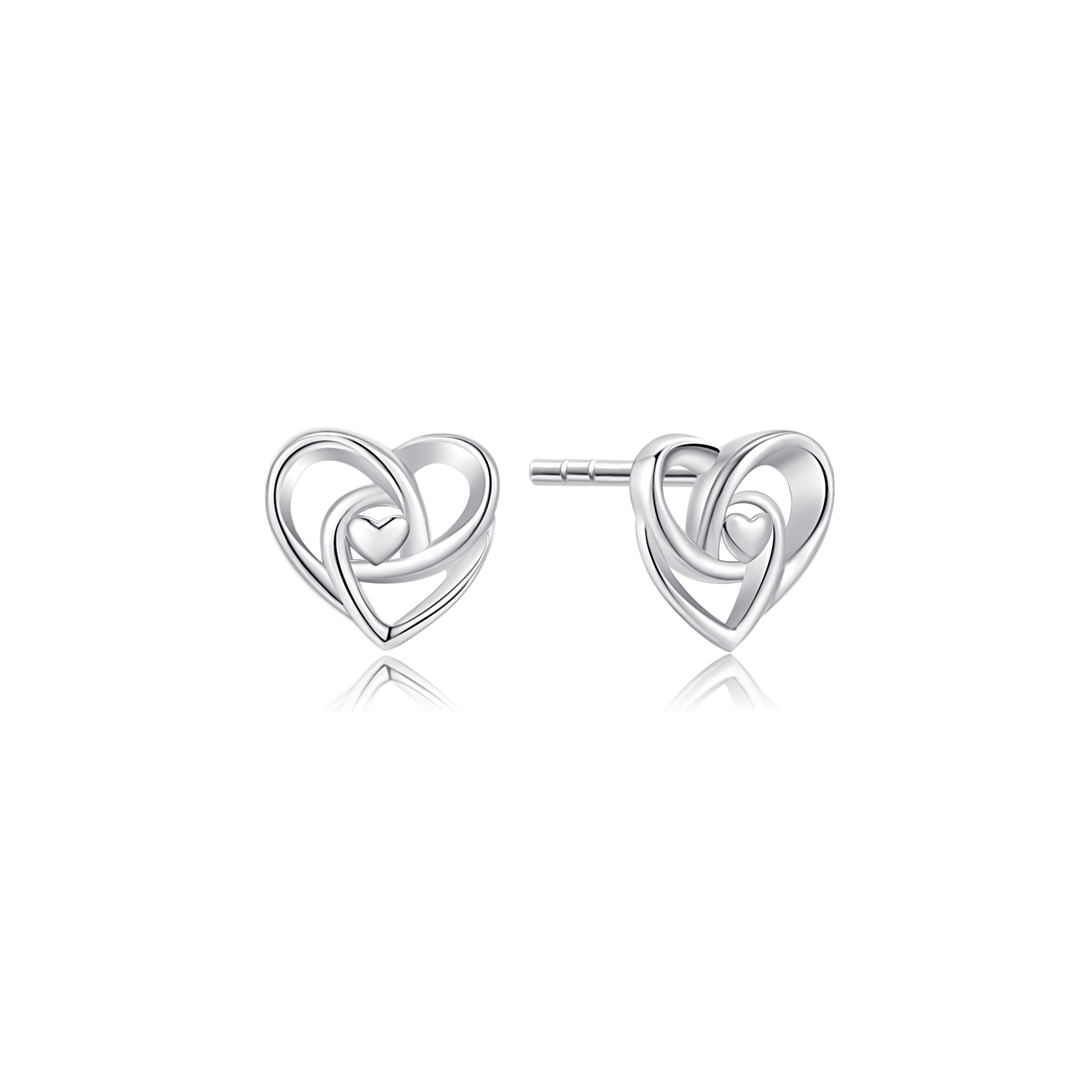 Disse romantiske sølv ørestikker er fremstillet i rhodineret sterlingsølv og designet som et elegant hjerte bestående af tre smukke buer med et lille hjerte i midten. Det fine og feminine design giver et tidløst udtryk, mens rhodineringen beskytter mod misfarvning og bevarer glansen. Perfekte som en kærlig gave eller et stilrent smykke til både hverdag og fest.