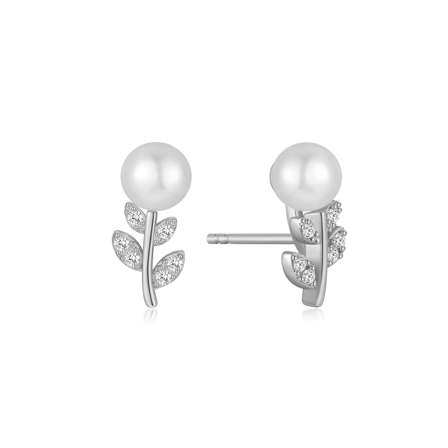 Disse elegante sølv ørestikker er fremstillet i rhodineret sølv og designet med fire smukt formede blade, prydet med funklende syntetiske cubic zirconia. I midten sidder en delikat ferskvandsperle, der tilføjer et klassisk og feminint udtryk. Kombinationen af glansfuldt sølv, strålende sten og naturlig perle gør ørestikkerne ideelle til både hverdagsbrug og festlige lejligheder.