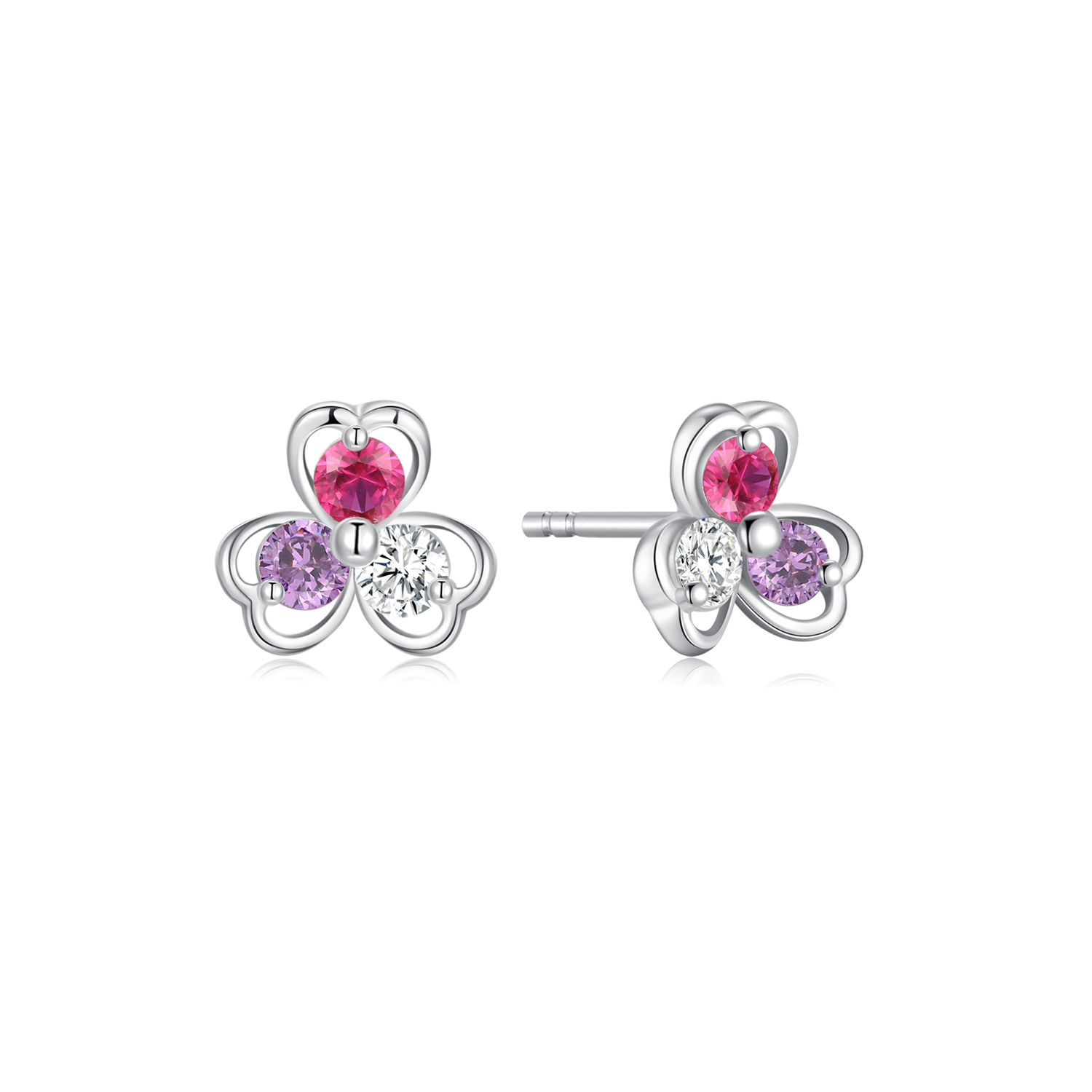 Disse sølv ørestikker i rhodineret finish har et elegant design med tre små hjerter, der symboliserer kærlighed og harmoni. Hvert hjerte er udsmykket med en funklende syntetisk cubic zirconia i klare, rubinrøde og ametystfarvede nuancer. Kombinationen af farver og glans giver et levende, men raffineret udtryk – perfekt til både daglig brug og festlige anledninger.