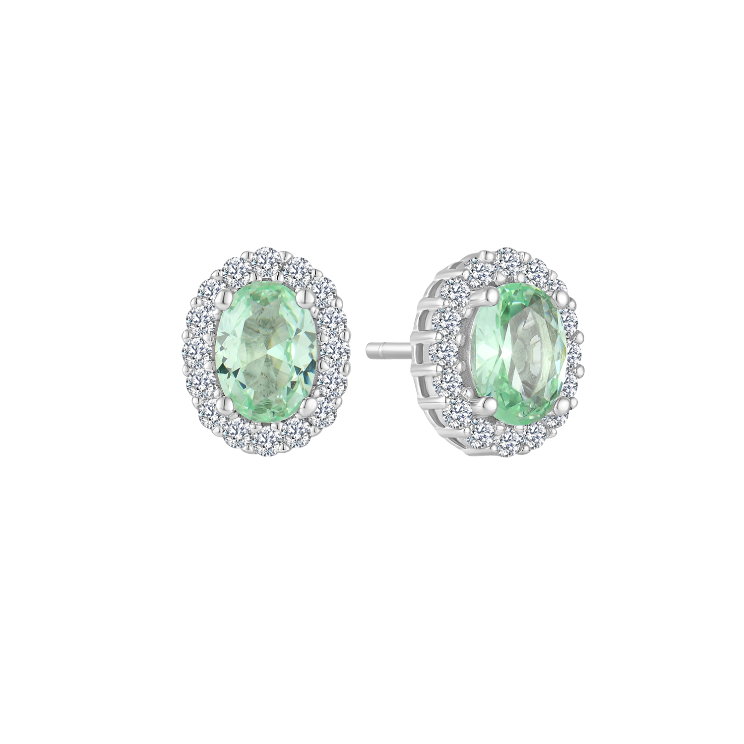 Disse smukke sølv ørestikker udstråler elegance med deres rhodinerede overflade, som beskytter mod anløbning og giver en varig glans. Øreringene er udsmykket med en syntetisk oval peridot i midten, omgivet af funklende syntetiske cubic zirconia langs kanten. Det stilfulde design kombinerer klassisk skønhed med moderne detaljer, hvilket gør dem perfekte til både hverdag og festlige anledninger.