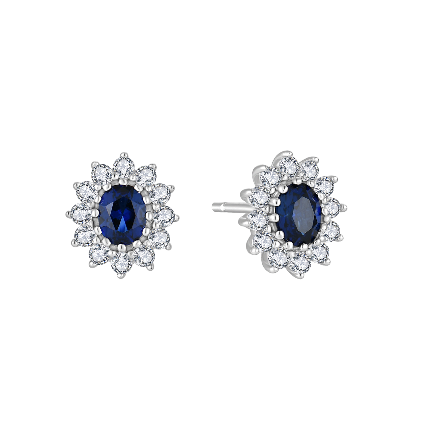 Disse elegante sølv ørestikker kombinerer klassisk design med moderne glans. Ørestikkerne er rhodineret for at bevare deres skinnende overflade og modstå anløbning. I midten pryder en oval syntetisk safir, som fremhæves af en række funklende syntetiske cubic zirconia langs kanten. Det tidløse og sofistikerede udtryk gør dem ideelle til både daglig brug og festlige lejligheder.