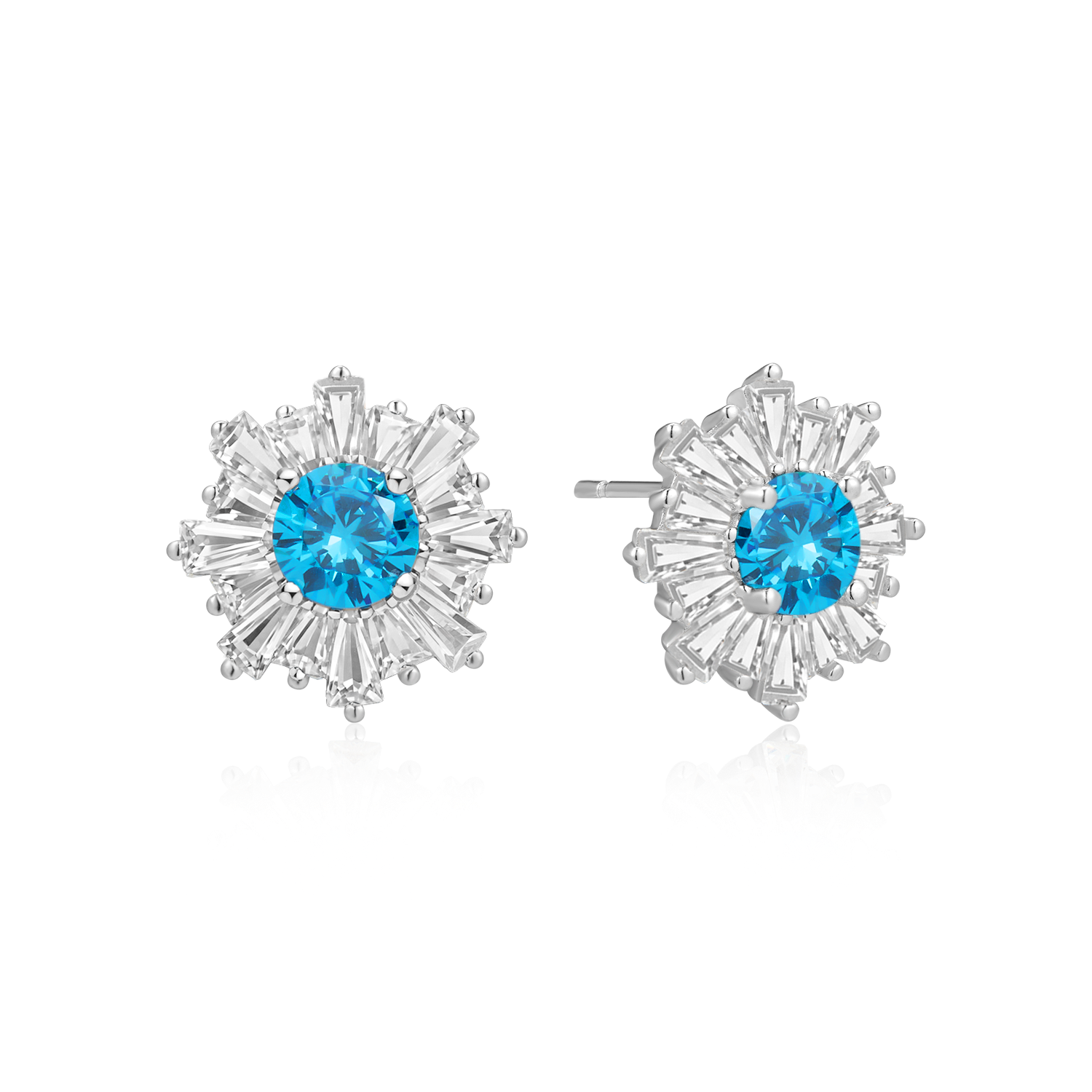 Disse smukke sølv ørestikker er designet som elegante blomster, der udstråler klassisk femininitet. Ørestikkerne er rhodinerede for at bevare deres skinnende overflade og modstå anløbning. I midten sidder en strålende blå topas, omgivet af funklende syntetiske cubic zirconia, som giver et levende og eksklusivt udtryk. Perfekte til både daglig brug og festlige lejligheder, hvor elegance ønskes.