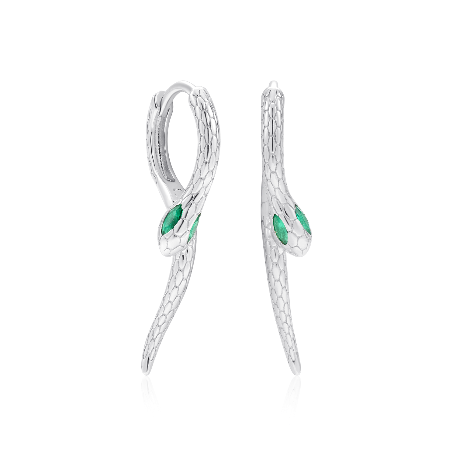 Disse moderne og stilfulde sølv ørestikker er udformet som rhodinerede knækcreoler med et elegant slangemotiv. Øreringene kombinerer et tidløst design med et råt og sofistikeret udtryk, hvilket gør dem perfekte til både hverdag og fest. Den rhodinerede overflade giver en smuk glans og beskytter mod anløbning, så smykket bevarer sin elegante finish længere.
