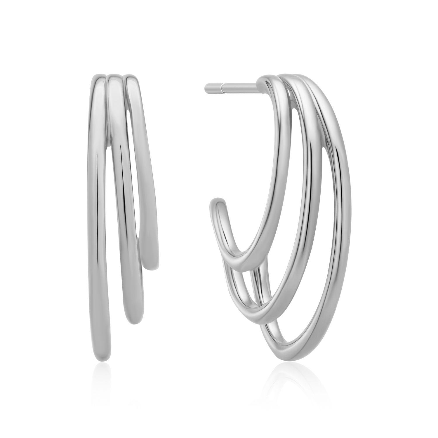 Stilfulde sølv ørestikker med et moderne og unikt design bestående af tre halv cirkler. Øreringene er fremstillet i rhodineret sterlingsølv, som giver en smuk glans og beskytter mod misfarvning. De forskellige buede former skaber et elegant og dynamisk udtryk, der passer perfekt til både hverdag og festlige lejligheder. Et tidløst smykke med et moderne twist.