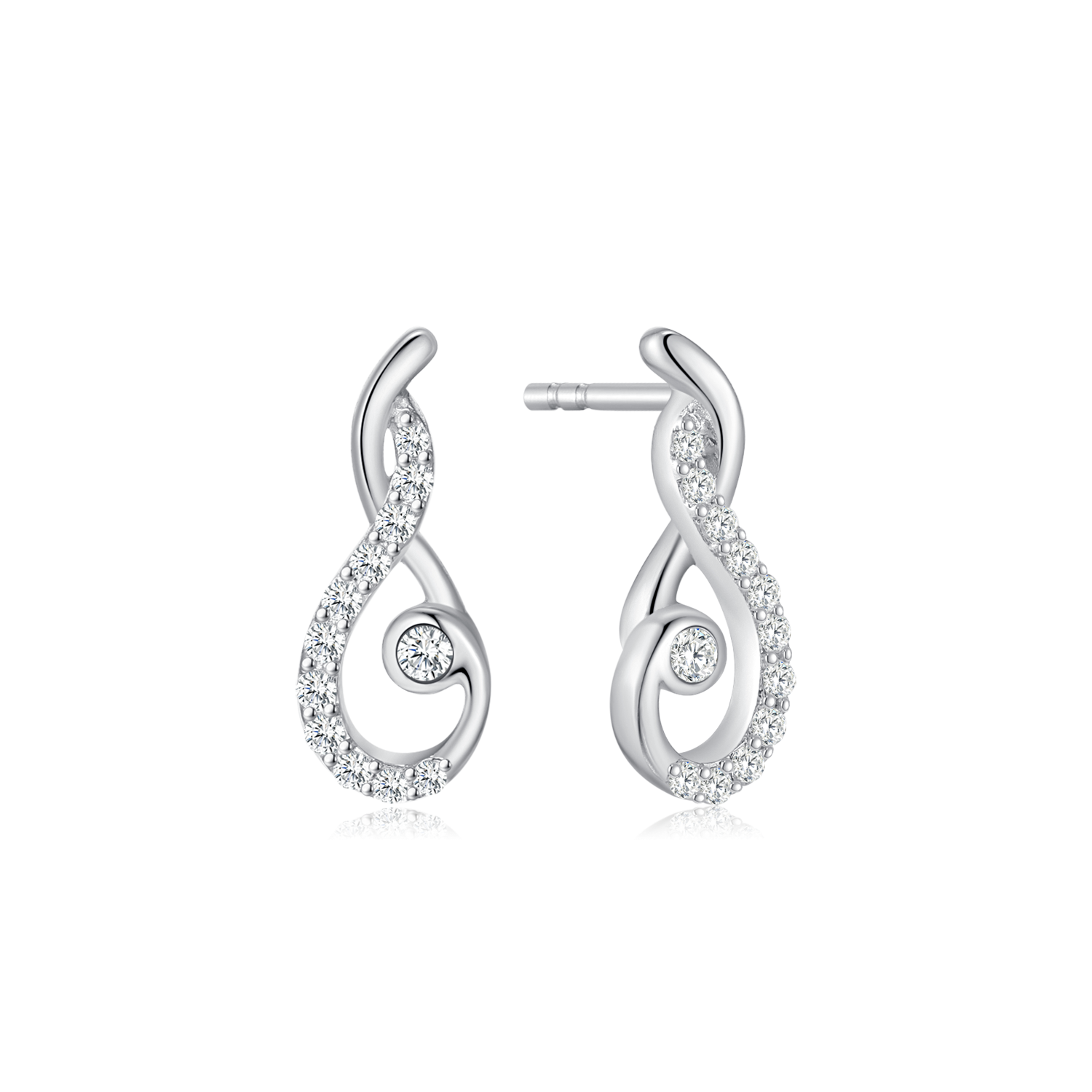 Fortryllende sølv ørestikker med et elegant dråbedesign, der kombinerer klassisk skønhed med moderne finesse. Øreringene er fremstillet i rhodineret sterlingsølv og prydet med en flettet detalje på toppen. Den midterste syntetiske cubic zirconia og de funklende sten langs kanten tilfører et glitrende og eksklusivt udtryk. Perfekte til både hverdagsbrug og festlige lejligheder.