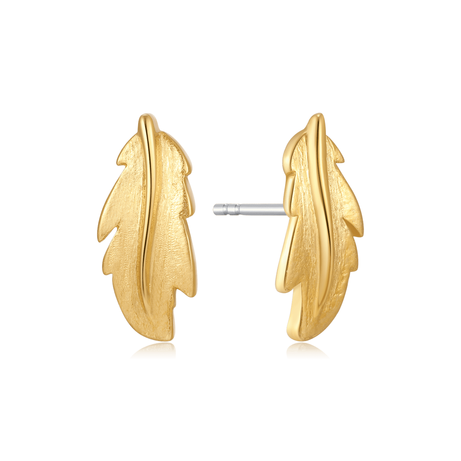 Stilfulde sølv ørestikker designet som elegante blade, der kombinerer varme gyldne toner med kølig sølvglans. Øreringene har et forgyldt bladmotiv og er udstyret med rhodineret stik og lås, hvilket sikrer både komfort og holdbarhed. Det delikate design udstråler naturlig elegance og passer perfekt til både hverdag og festlige lejligheder.