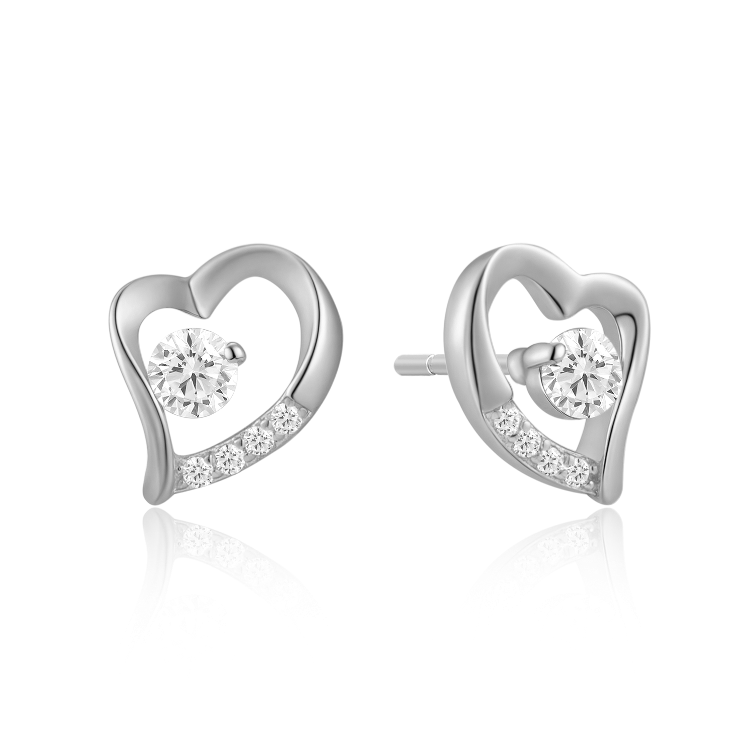 Disse elegante sølv ørestikker er designet som skæve hjerter, der giver et moderne og feminint udtryk. Øreringene er rhodineret for at bevare deres glans og beskytte mod anløbning. De funklende syntetiske cubic zirconia sten fremhæver hjertets form og tilfører et smukt spil af lys. Et tidløst valg, der passer perfekt til både hverdag og fest.