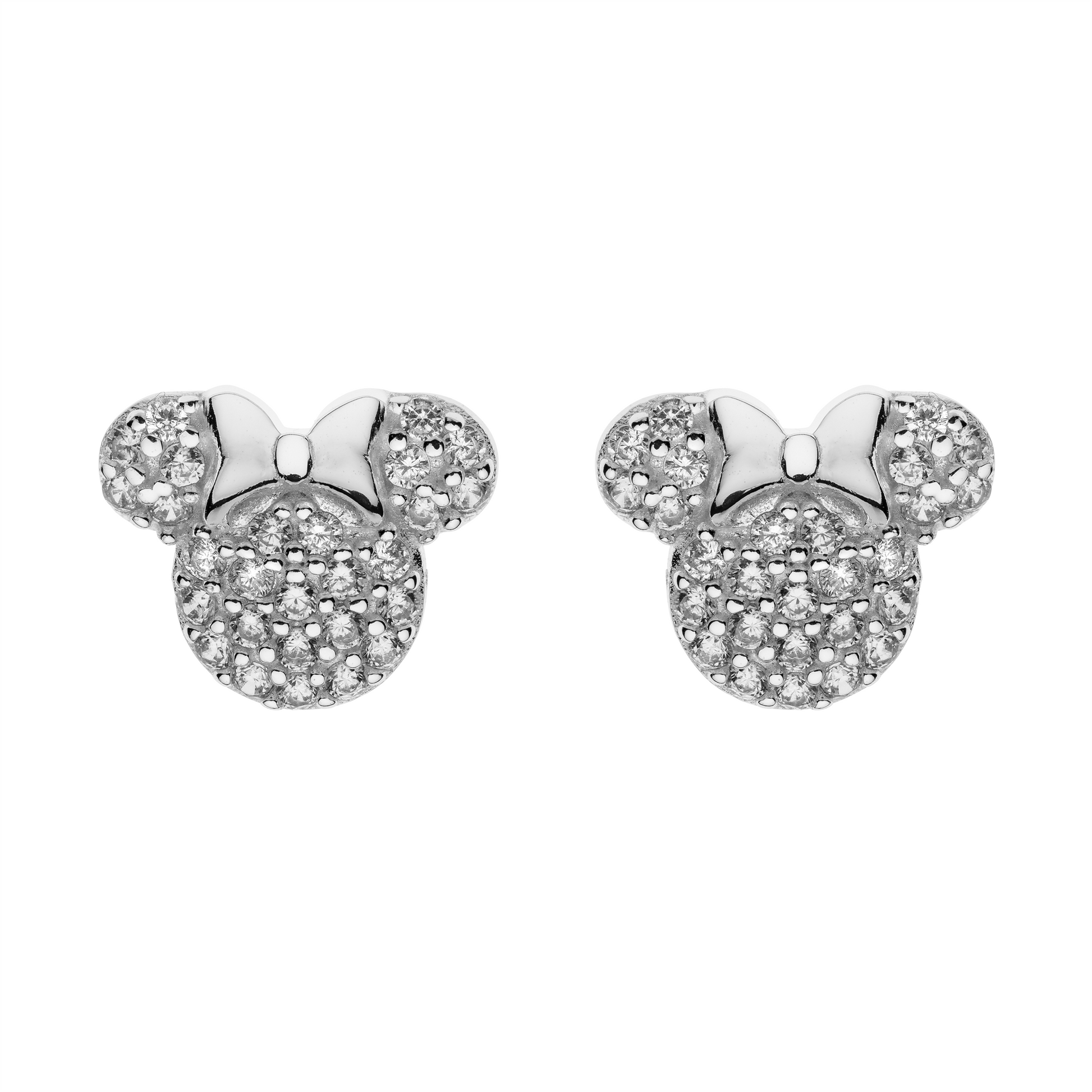 Disse elegante sølv ørestikker er inspireret af det ikoniske Minnie-design og udsmykket med funklende syntetiske cubic zirconia over hele ansigtet. Det detaljerede design kombinerer sødme og glamour på perfekt vis, hvilket gør dem ideelle til både børn og voksne. Øreringene tilfører et legende, men samtidig sofistikeret udtryk, der passer til både hverdag og fest.