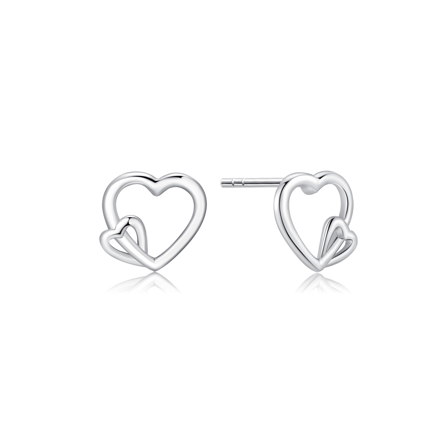 Disse elegante sølv ørestikker har et tidløst og romantisk design med et stort hjerte og et mindre hjerte placeret smukt i kanten. Ørestikkerne er fremstillet i rhodineret sterlingsølv, som giver en skinnende overflade og ekstra beskyttelse mod misfarvning. Perfekte til både hverdag og fest, hvor de tilføjer et strejf af elegance og kærlighed til ethvert outfit.