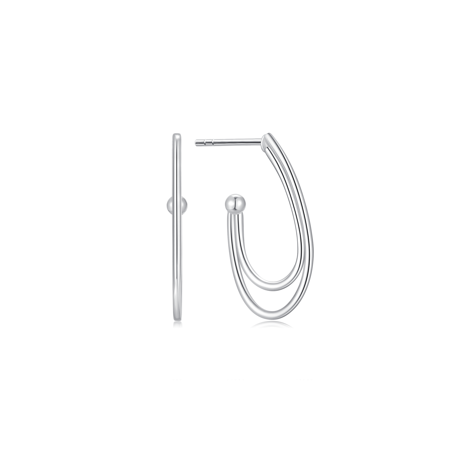 Disse elegante sølv ørestikker har et moderne og stilrent design med to ovale buer, der skaber en smuk og harmonisk form. Ørestikkerne er fremstillet i rhodineret sterlingsølv, hvilket giver en skinnende finish og beskytter mod misfarvning. Det dobbelte buedesign tilføjer dybde og bevægelse, hvilket gør dem ideelle til både hverdagsbrug og mere festlige lejligheder.