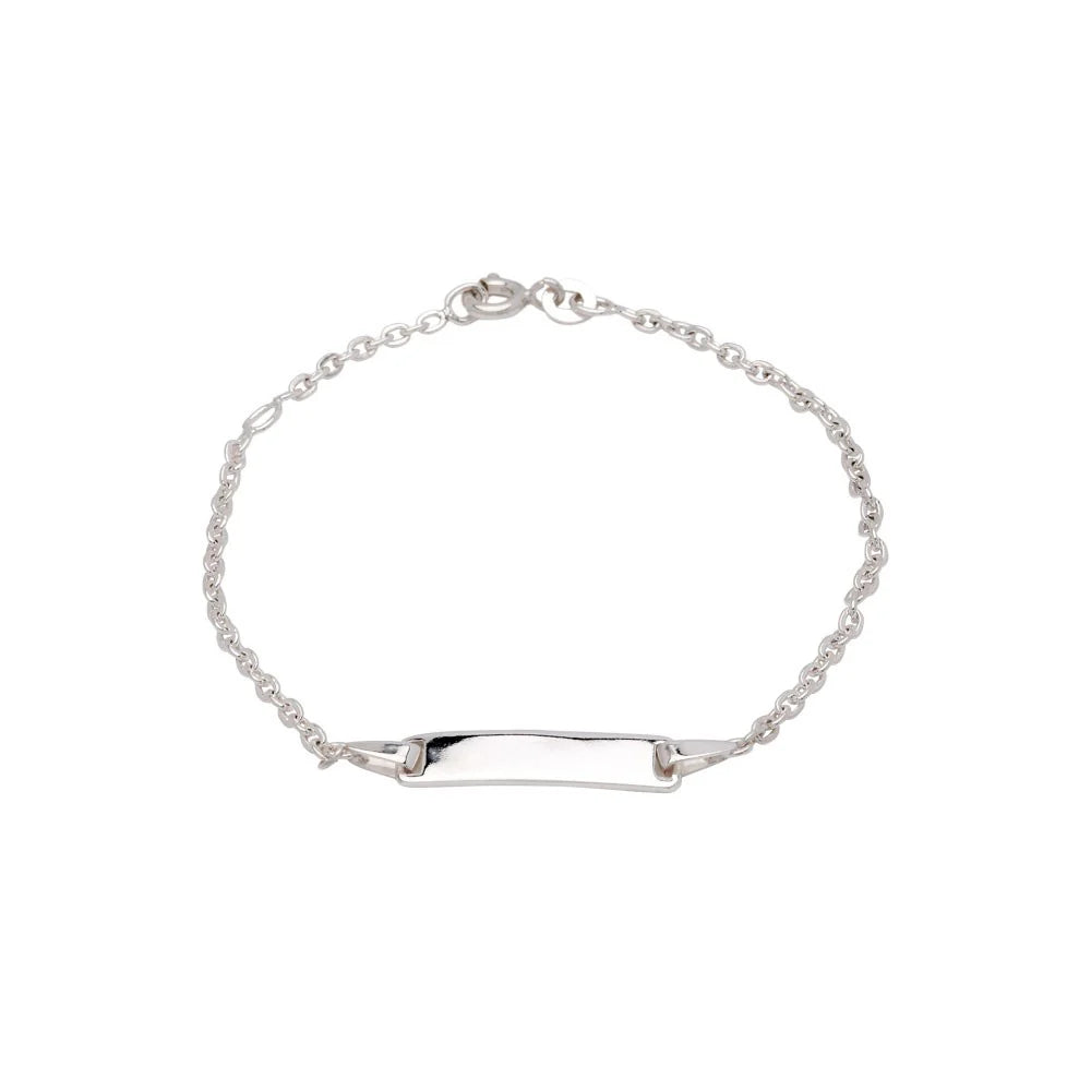 Et klassisk og elegant sølvarmbånd med en fin plade, designet specielt til børn. Armbåndet har et tidløst udtryk med en blank, rhodineret overflade, der giver ekstra glans og beskytter mod misfarvning. Den enkle plade gør det muligt at personliggøre smykket, hvilket gør det til en oplagt gave til dåb, fødselsdag eller andre særlige anledninger. Et smykke, der kan bæres med glæde i mange år.