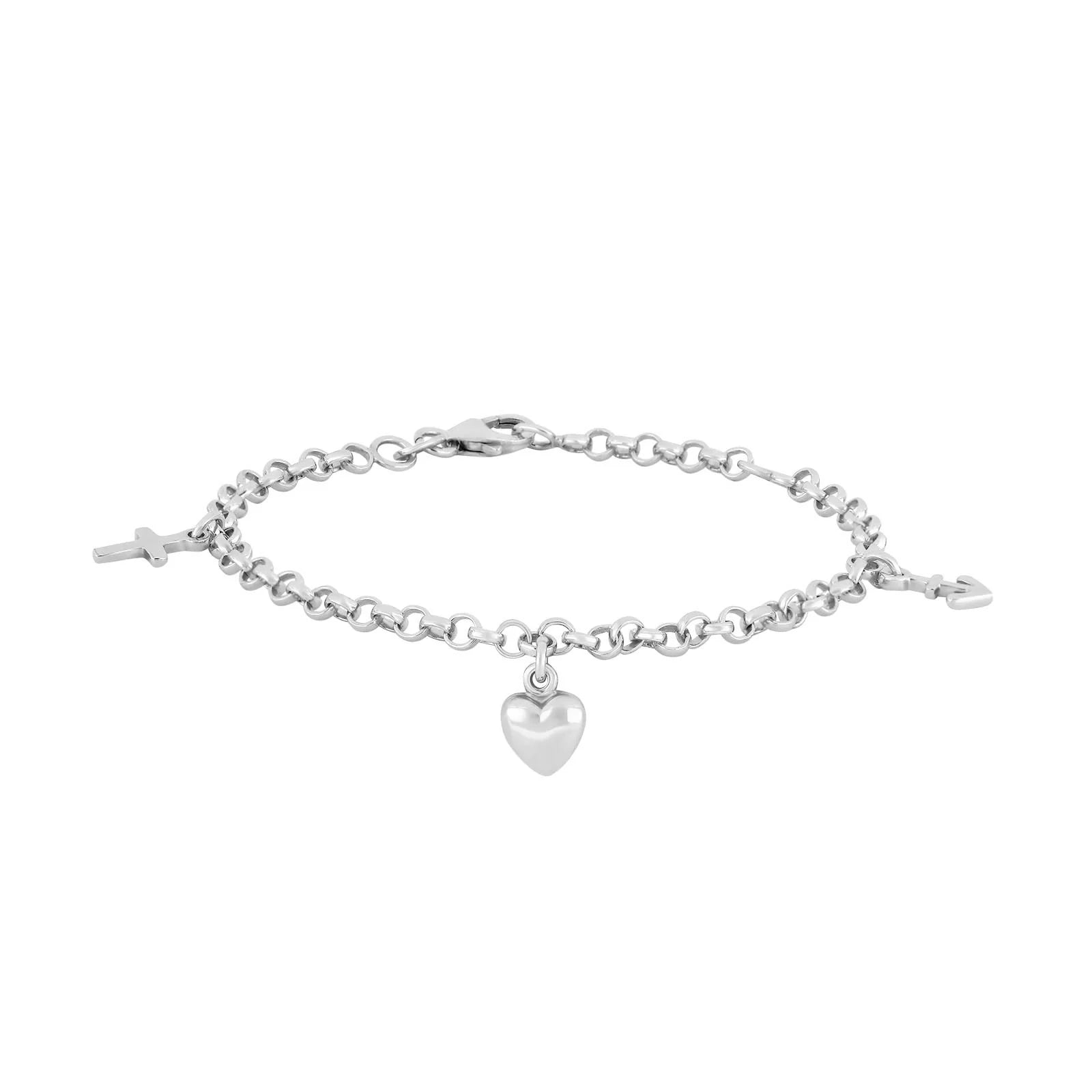 Et charmerende sølvarmbånd med symbolerne for tro, håb og kærlighed, skabt til børn. Armbåndet har et klassisk og meningsfuldt design, som gør det til en oplagt gave til dåb, fødselsdag eller andre særlige begivenheder. Den blanke, rhodinerede overflade giver smykket ekstra glans og beskytter samtidig mod misfarvning. Et tidløst smykke, der kombinerer symbolik og elegance på en smuk måde.