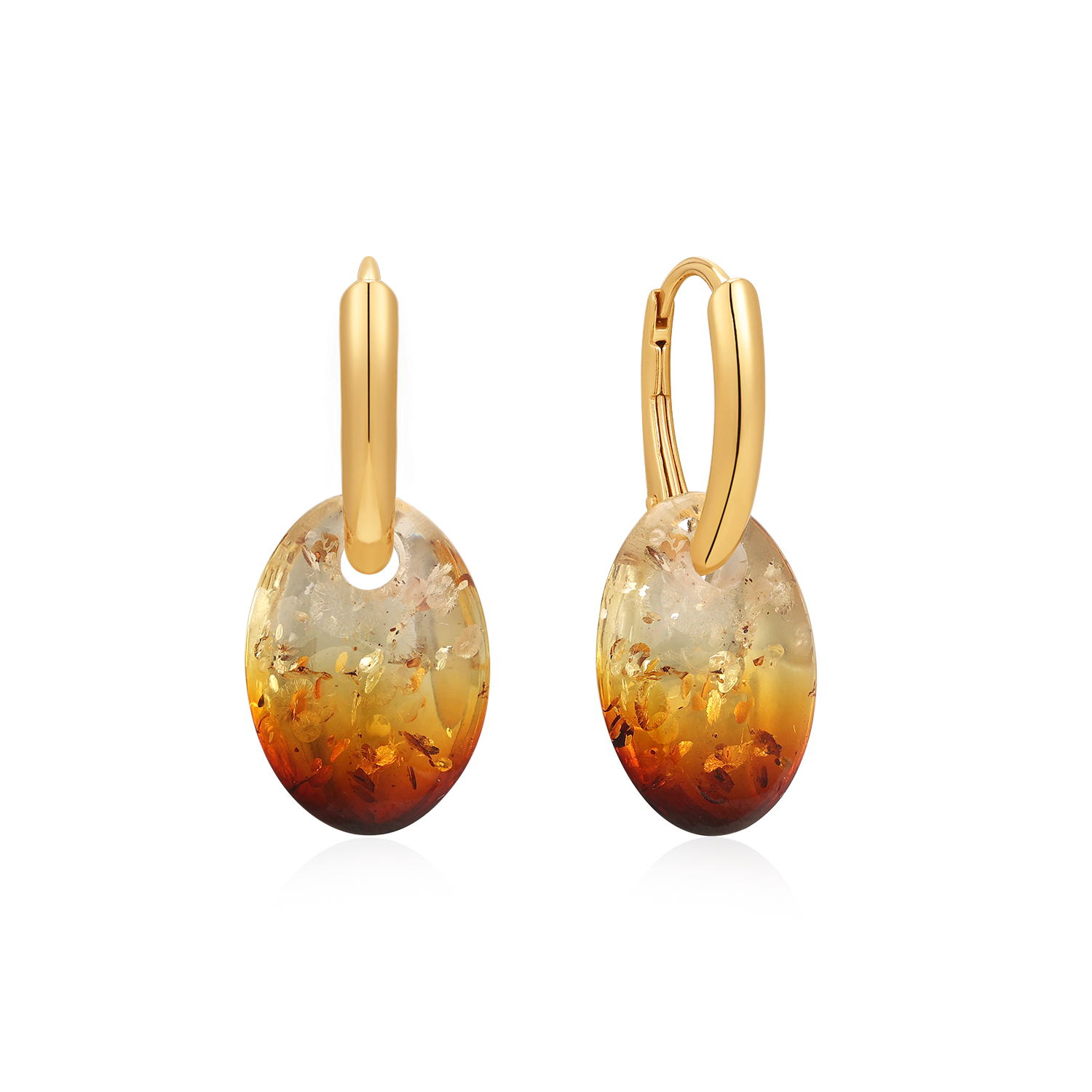 Disse sølvforgyldte knækcreoler udstråler klassisk elegance med et strejf af naturlig skønhed. Øreringene er fremstillet i sterlingsølv belagt med guld, hvilket giver en varm og luksuriøs glans. Fra hver creol hænger en smuk, oval ravsten, der tilfører et unikt og tidløst udtryk. Perfekte til både hverdag og festlige lejligheder, hvor de giver et sofistikeret og stilfuldt look.