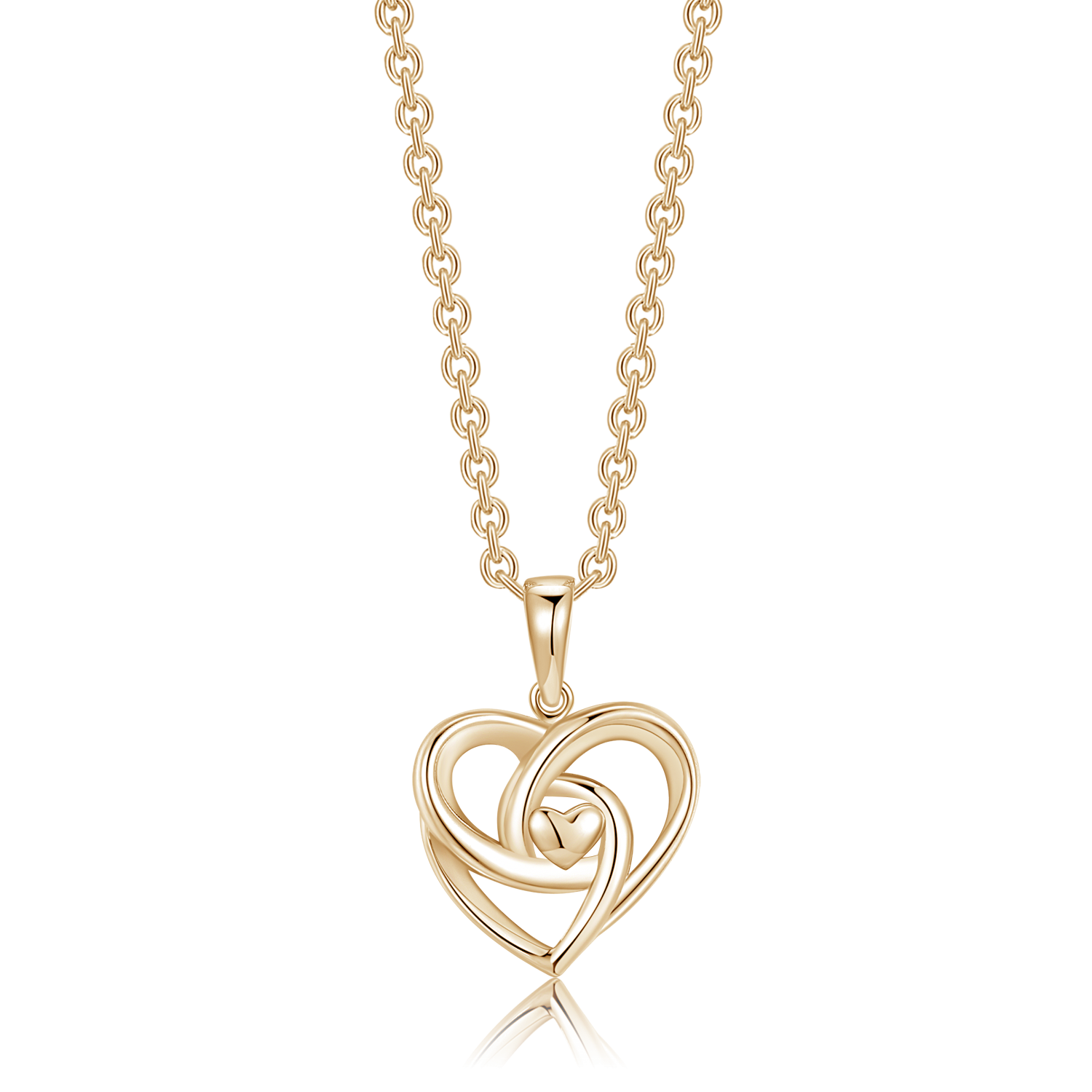 Denne smukke sølvforgyldte halskæde har et elegant hjertevedhæng designet af tre buer med et lille hjerte i midten. Smykket symboliserer kærlighed, harmoni og samhørighed, og den varme guldtone giver et eksklusivt og feminint udtryk. Den justerbare kædelængde på 42–45 cm gør halskæden alsidig og perfekt til både hverdag og særlige anledninger.