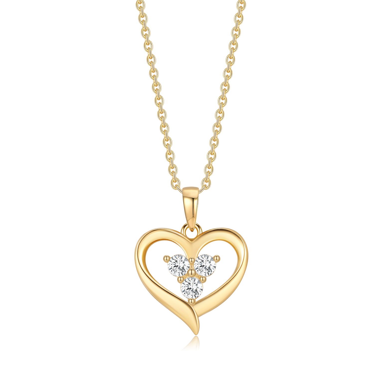 Elegant sølvforgyldt halskæde med et smukt hjertevedhæng, prydet med tre funklende syntetiske cubic zirconia i midten. Smykket kombinerer klassisk romantik med moderne elegance og er perfekt som gave til en, du holder af. Fremstillet i ægte sølv med en forgyldt overflade, der giver en varm glød og beskytter mod anløbning. Ideel til både hverdag og festlige lejligheder.