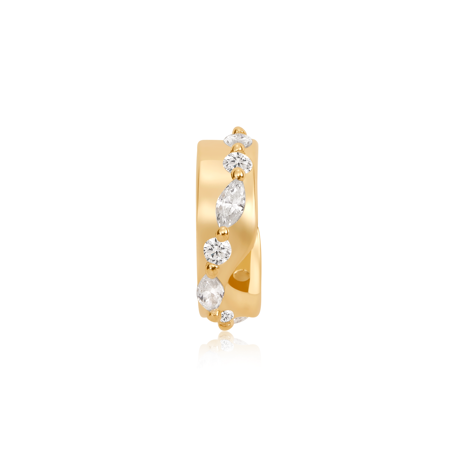 En elegant sølvforgyldt halskæde med et cirkelformet vedhæng udsmykket med fine buer og funklende syntetiske cubic zirconia. Kombinationen af det buede design og de skinnende sten giver smykket et moderne og sofistikeret udtryk. Den sølvforgyldte overflade fremhæver glansen og gør halskæden ideel til både daglig brug og festlige lejligheder.