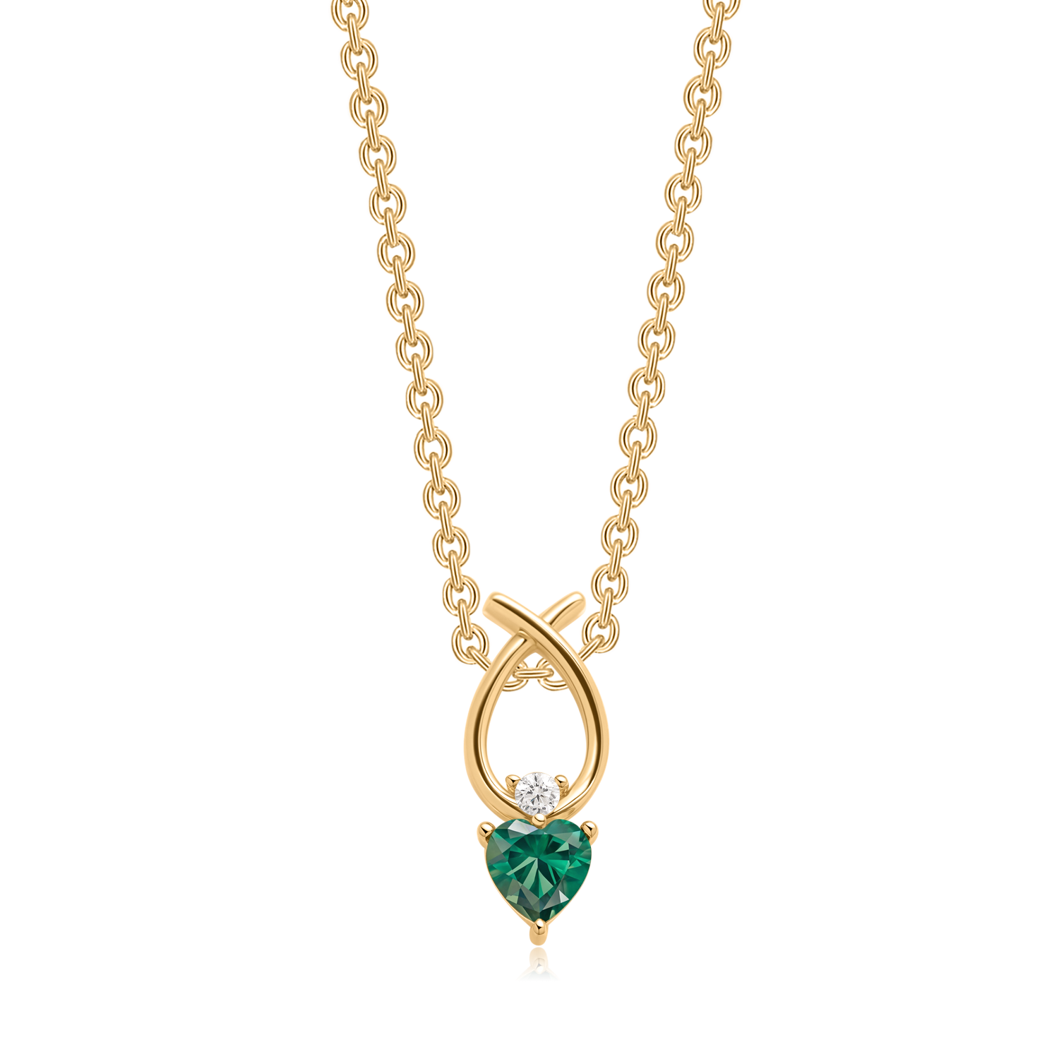 En fortryllende sølvforgyldt halskæde med et elegant, flettet ovalt vedhæng prydet med en strålende syntetisk smaragd og en funklende cubic zirconia. Kombinationen af den grønne sten og de gyldne toner skaber et eksklusivt og tidløst udtryk. Smykket udstråler feminin elegance og er perfekt til både hverdagsbrug og festlige lejligheder.