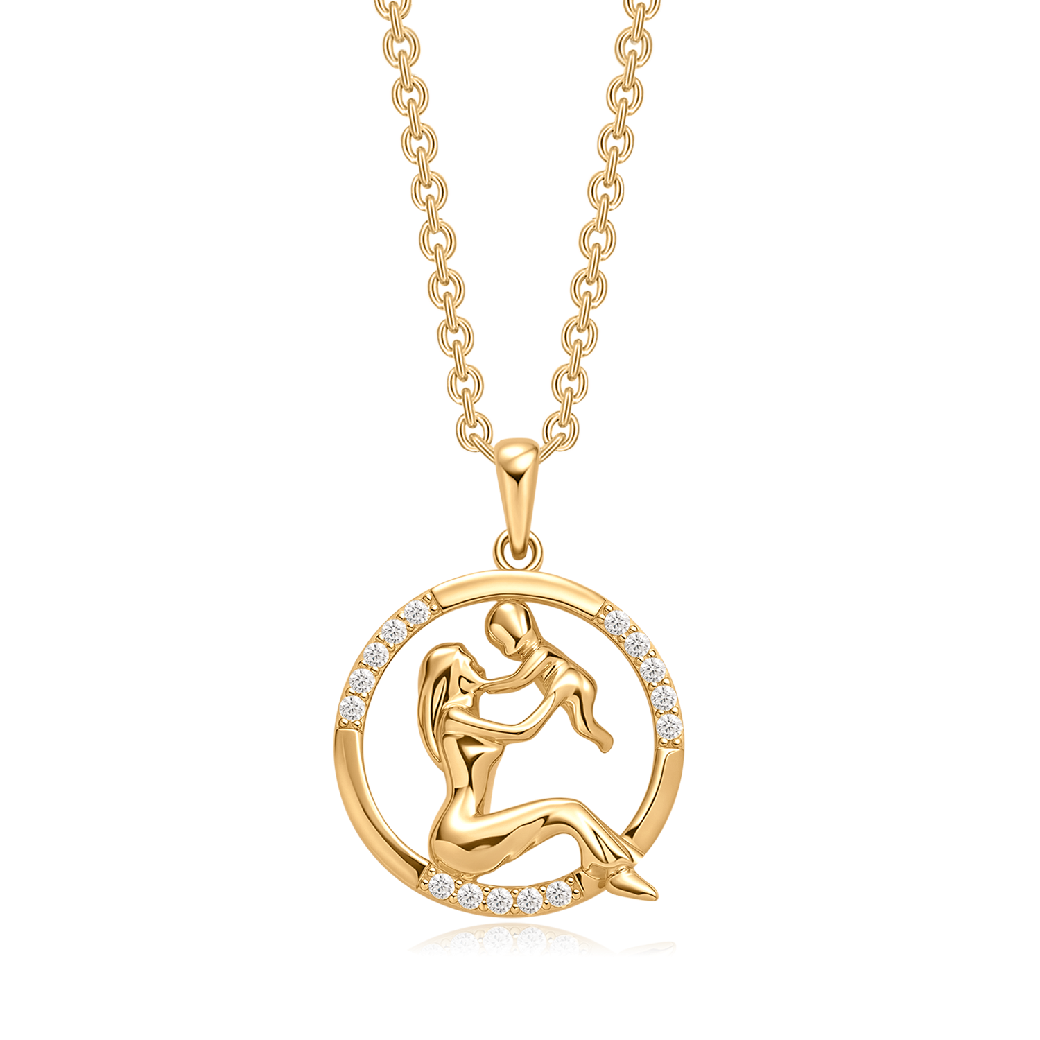 Denne elegante sølvforgyldte halskæde har et cirkeldesign, der symboliserer "Mor og barn," smukt prydet med syntetiske cubic zirconia. Et rørende smykke, der fejrer kærligheden og båndet mellem mor og barn, perfekt som gave eller som et personligt symbol på denne særlige forbindelse.