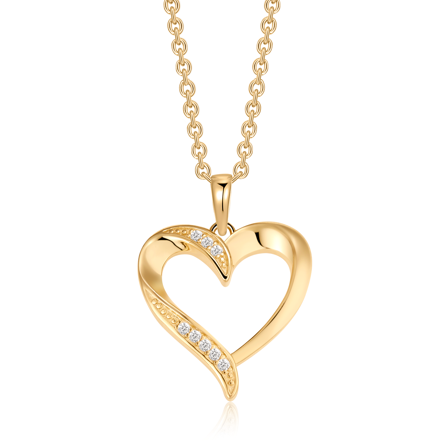 Denne smukke sølvforgyldte halskæde har et hjertevedhæng, prydet med syntetiske cubic zirconia, der giver et elegant og glitrende udtryk. Hjertet symboliserer kærlighed og romantik, og den tidløse design gør halskæden til et perfekt valg til både hverdag og særlige lejligheder.