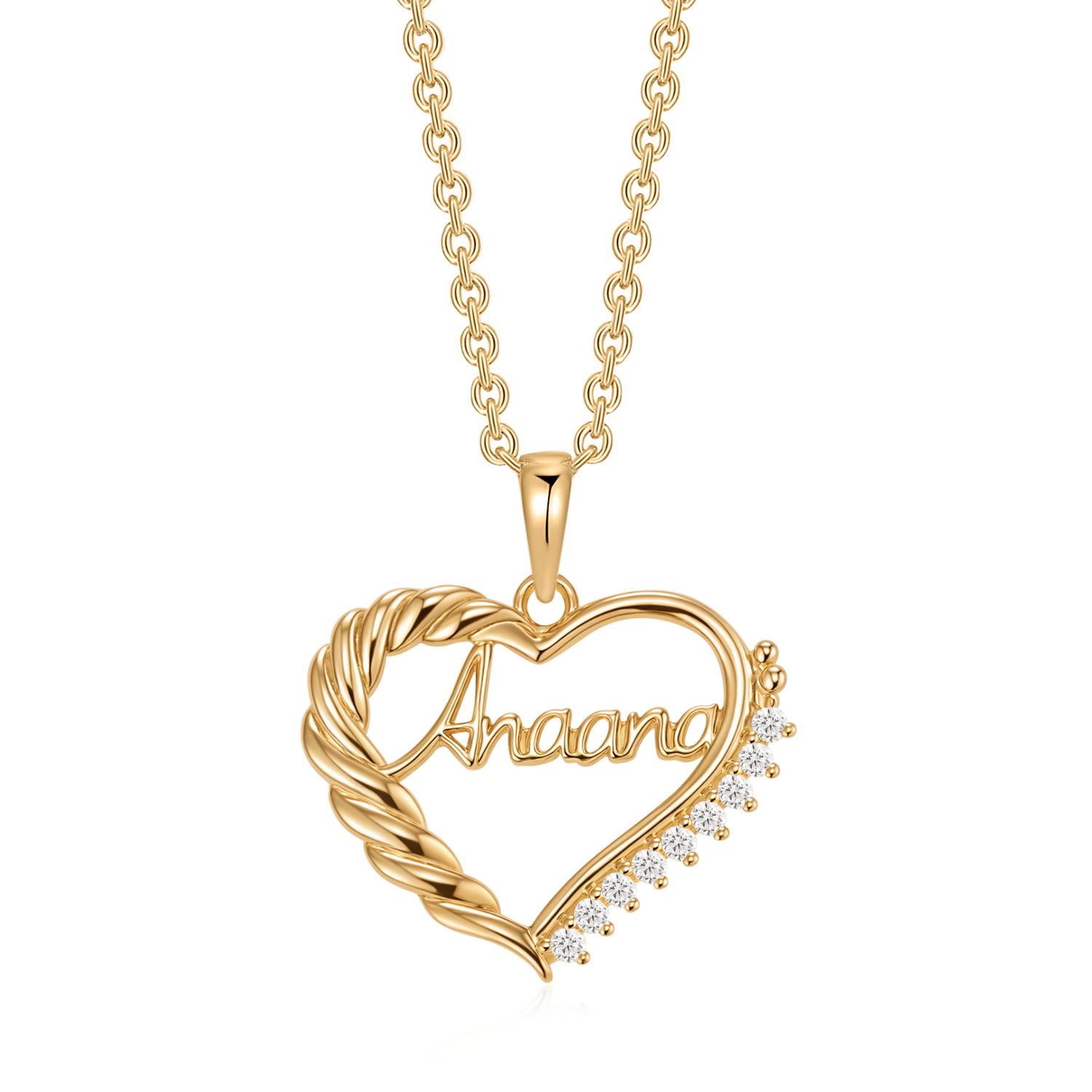 - Design: Hjerte med tekst "Anaana" og syntetiske cubic zirconia