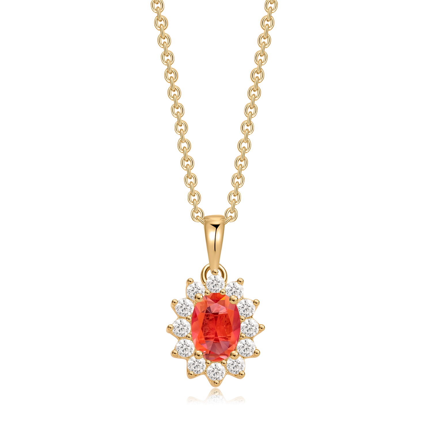 Denne elegante sølvforgyldte halskæde har en oval form prydet med syntetisk cubic zirconia og en smuk rubin. Kombinationen af de glitrende cubic zirconia og den røde rubin giver halskæden et luksuriøst og sofistikeret udseende, ideel til både hverdag og specielle anledninger