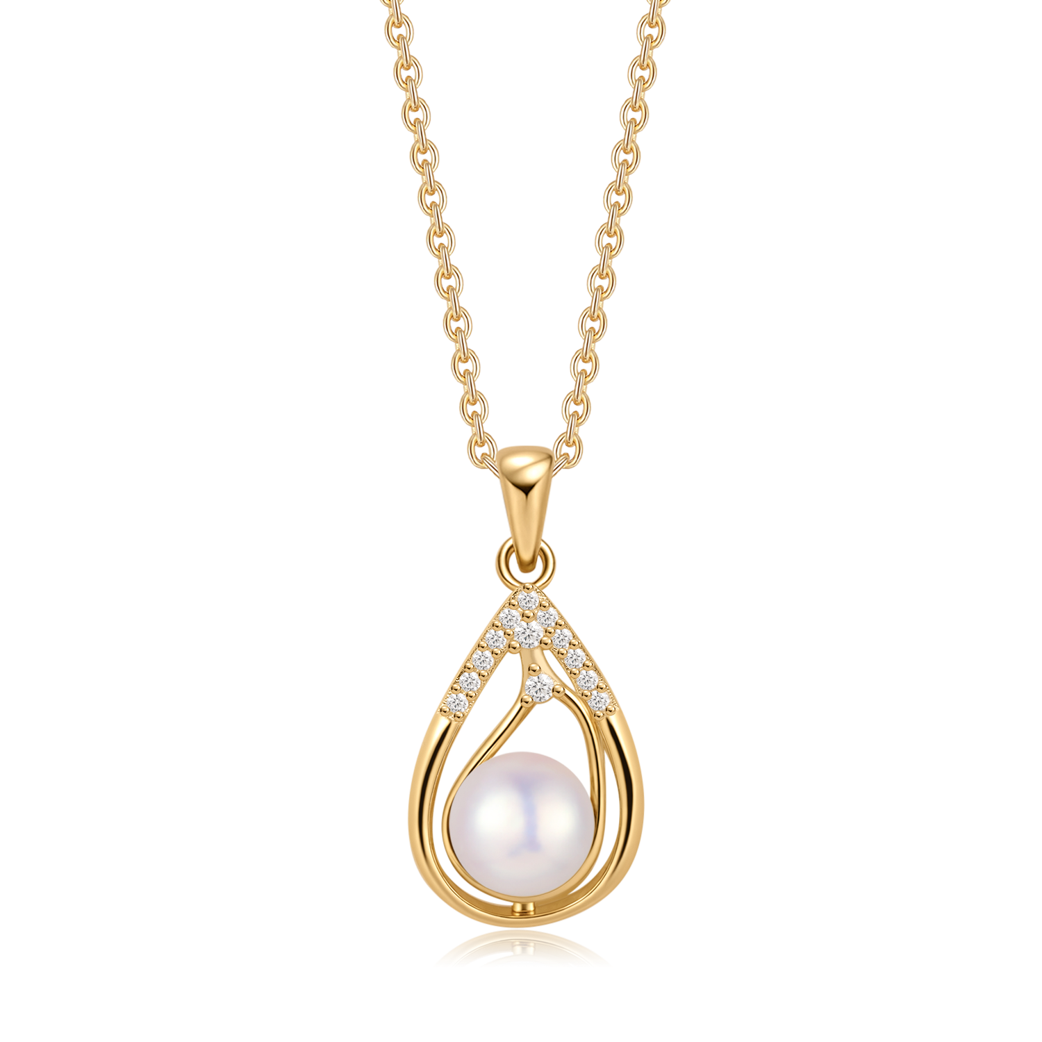 - Design: Sølvforgyldt dobbelt dråbe med syntetiske cubic zirconia og ferskvandsperle