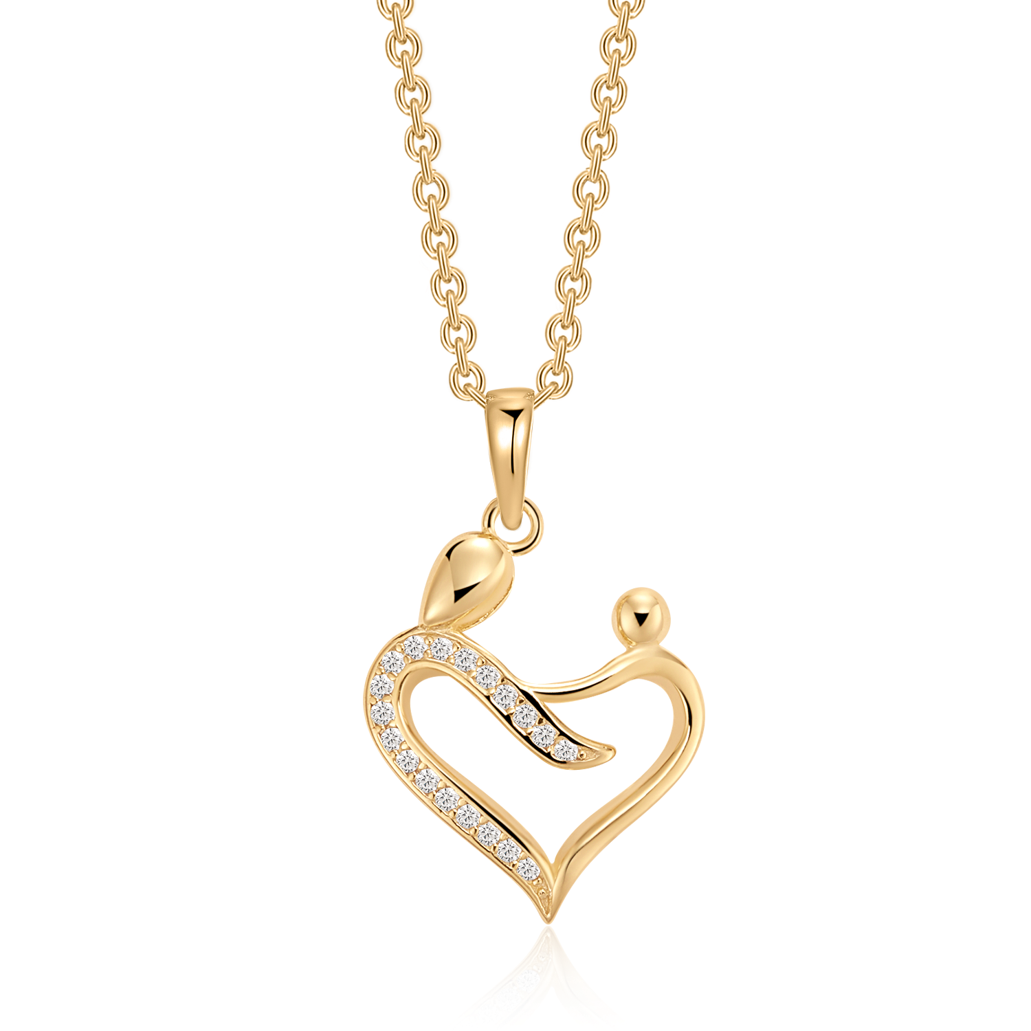 - Vedhæng: Hjerte med mor og barn motiv samt syntetiske cubic zirconia