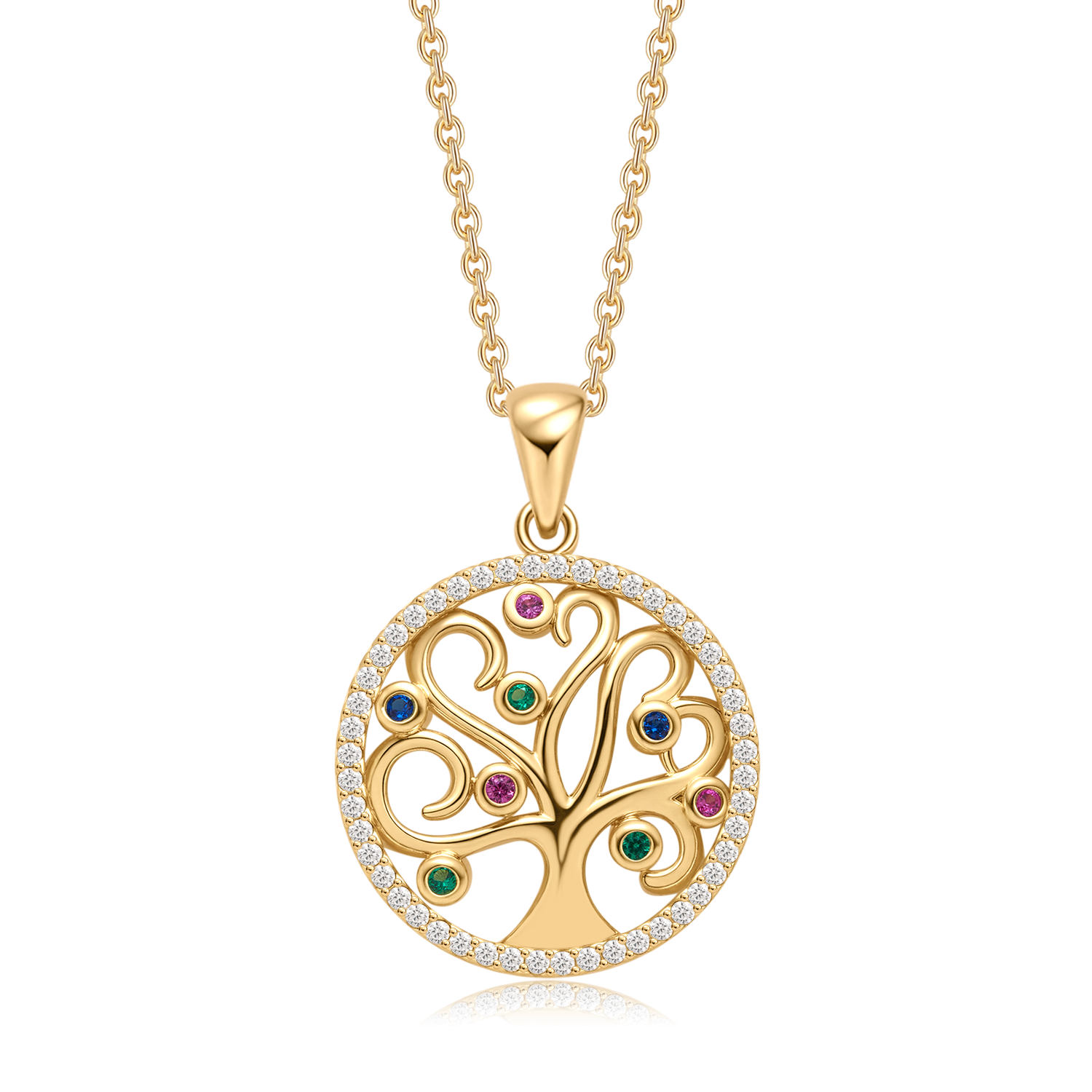Denne smukke sølvforgyldte halskæde prydes af et livets træ design, smykket med syntetiske cubic zirconia i farverige sten, der tilføjer et livligt og elegant præg. Træet symboliserer livets vækst og forbindelser, mens den rhodinerede sølvkæde giver et luksuriøst udtryk. Halskæden har en justerbar længde, der gør den ideel til enhver anledning.