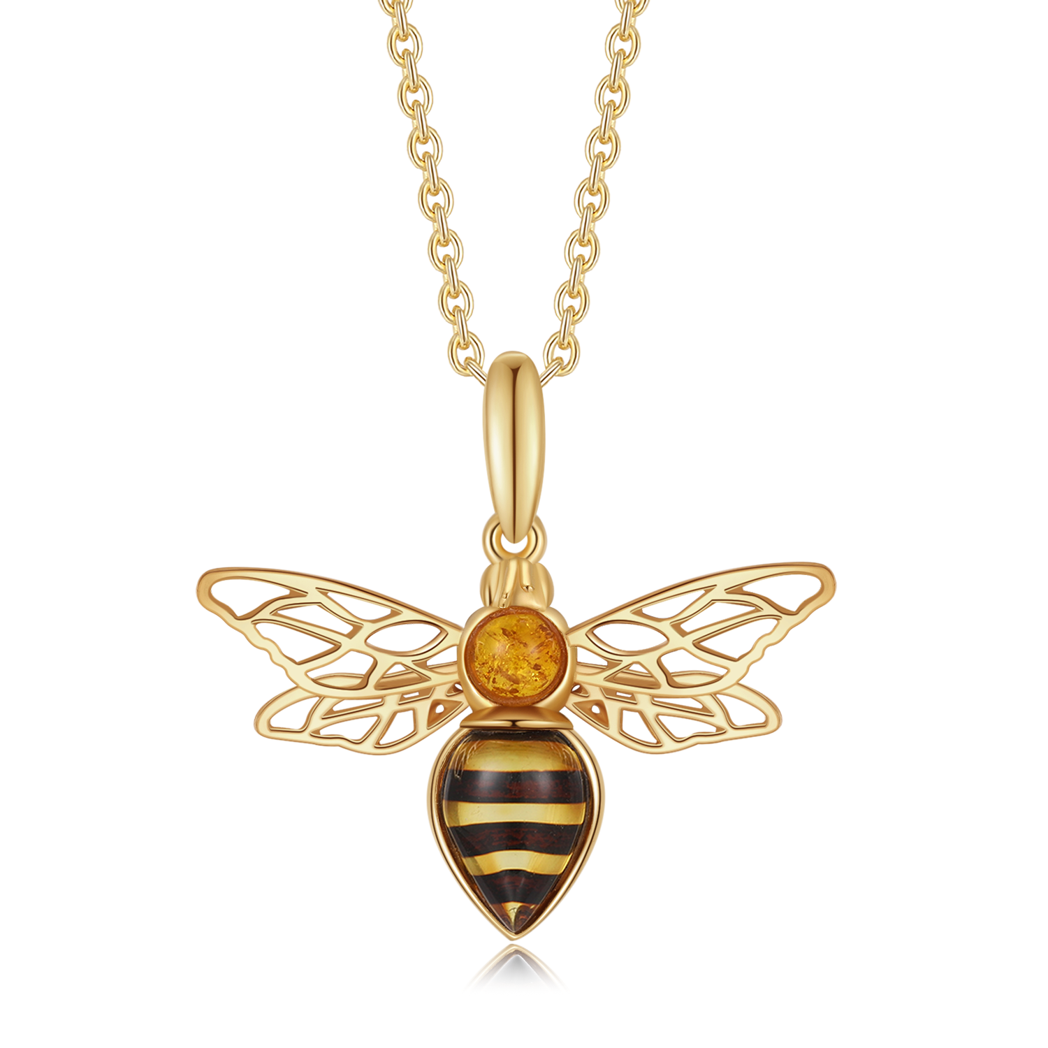 En elegant sølvforgyldt halskæde prydet med et smukt bi-vedhæng med rav, der giver et varmt og naturligt skær. Halskæden kombinerer klassisk design med et moderne touch, perfekt til både hverdag og festlige lejligheder. Den fine kæde fremhæver vedhængets unikke detaljer og tilfører et strejf af luksus til ethvert outfit. Et ideelt valg for dem, der elsker naturens æstetik og tidløs elegance.