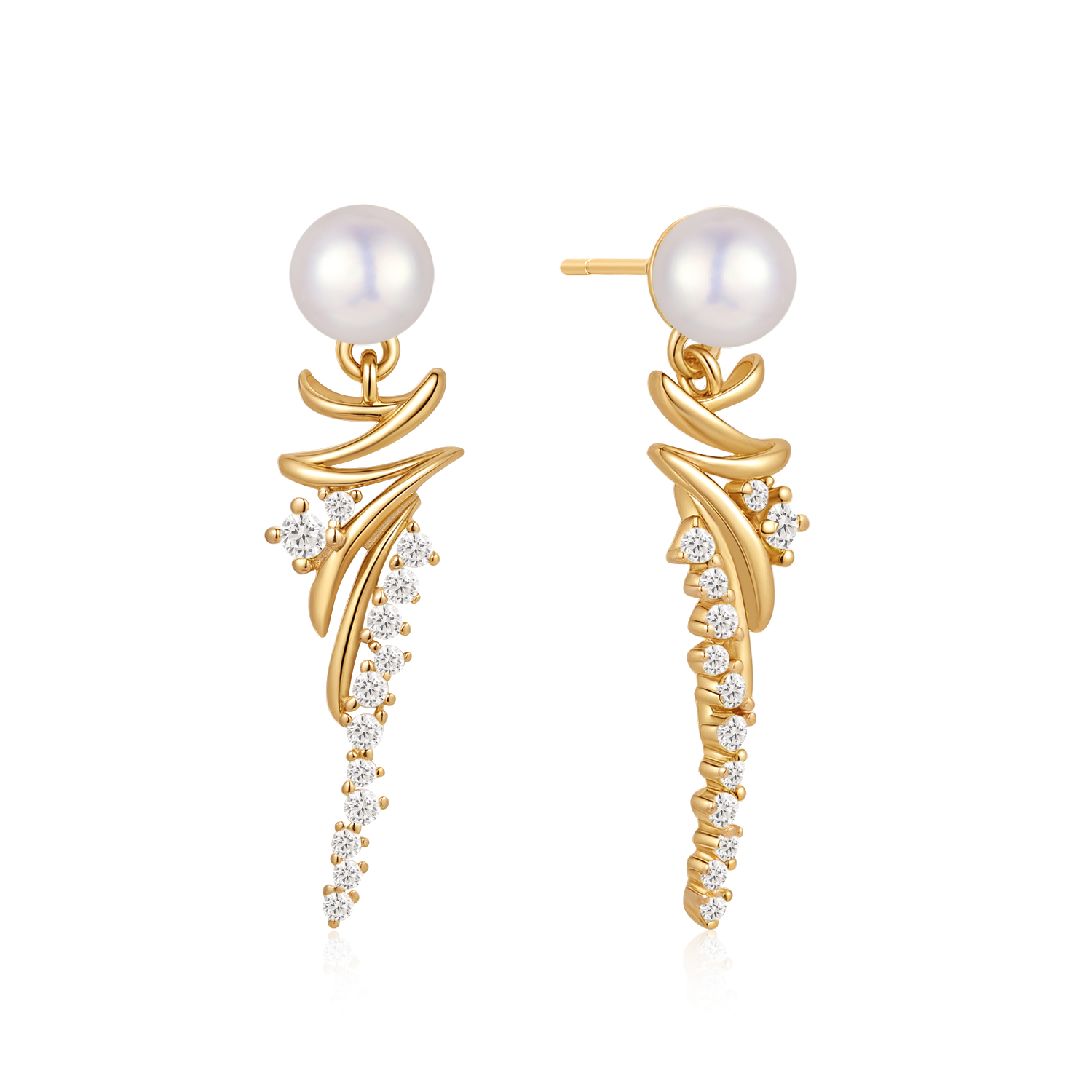 Disse elegante sølvforgyldte ørehængere forener tidløs skønhed og moderne design. Den aflange zigzag-form er smukt udsmykket med funklende syntetiske cubic zirconia, som indrammer en delikat ferskvandsperle. Kombinationen af det gyldne skær og den bløde perleglans skaber et sofistikeret udtryk, der passer perfekt til både hverdag og festlige lejligheder. Et eksklusivt valg til den stilbevidste kvinde.
