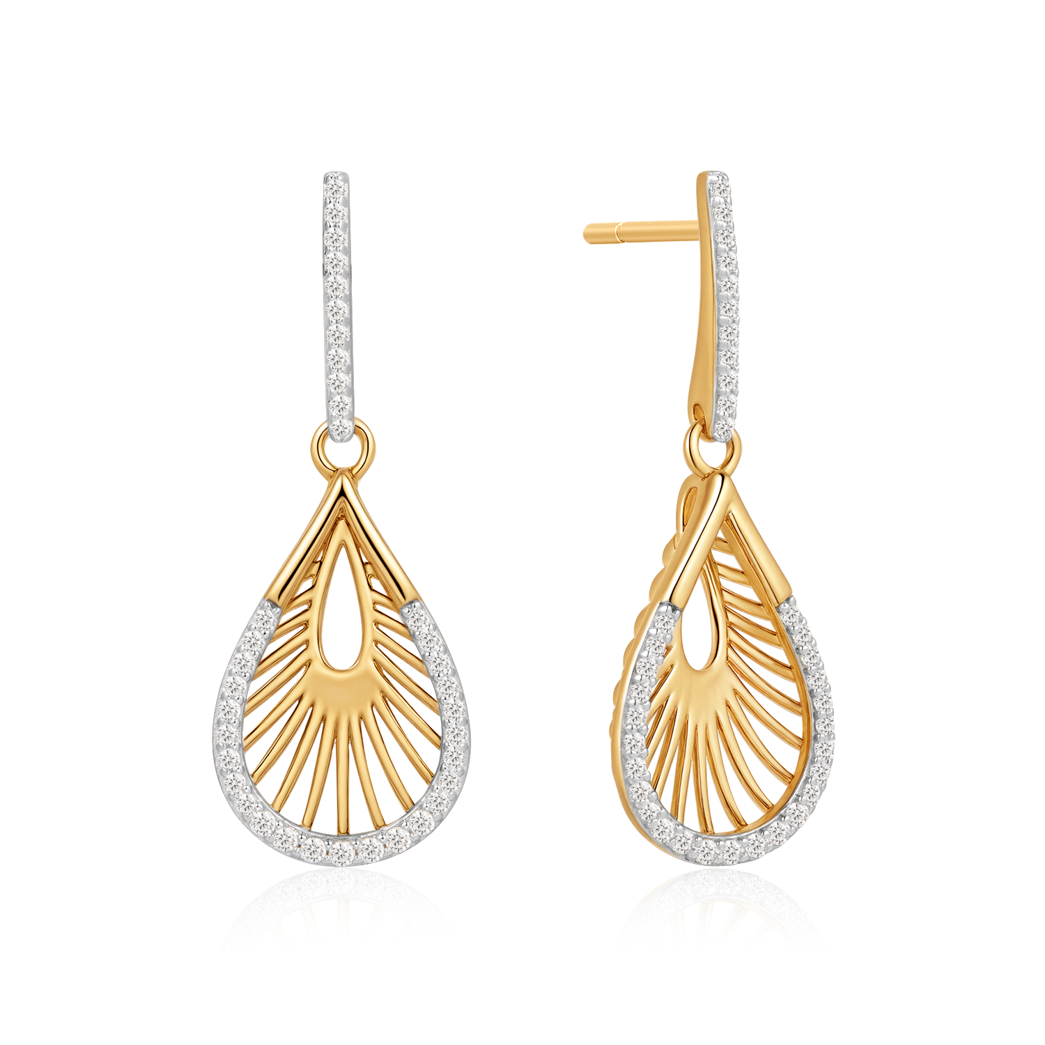 Disse sølvforgyldte ørehængere kombinerer elegance og moderne design i en harmonisk balance. Den smukke dråbeform med fine streger giver et stilrent udtryk, mens de funklende syntetiske cubic zirconia tilføjer et strejf af glamour. Øreringene fremstår lette og feminine og er perfekte til både daglig brug og festlige lejligheder. Et tidløst valg til enhver smykkesamling.