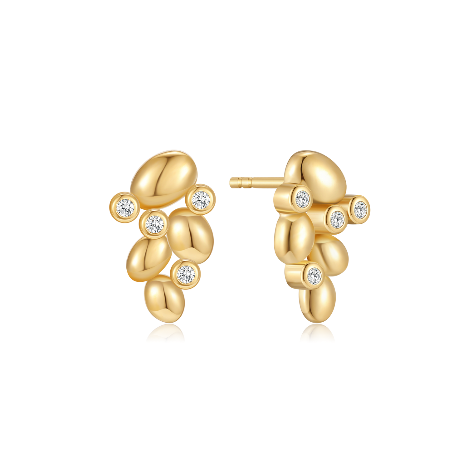 Disse elegante sølvforgyldte ørestikker består af fem ovale led i forskellige størrelser, der skaber et moderne og dynamisk udtryk. Fire af leddene er smukt udsmykket med funklende syntetiske cubic zirconia, som tilfører et eksklusivt skær. Ørestikkerne kombinerer tidløs elegance med et nutidigt design og passer perfekt til både hverdagsbrug og festlige lejligheder.