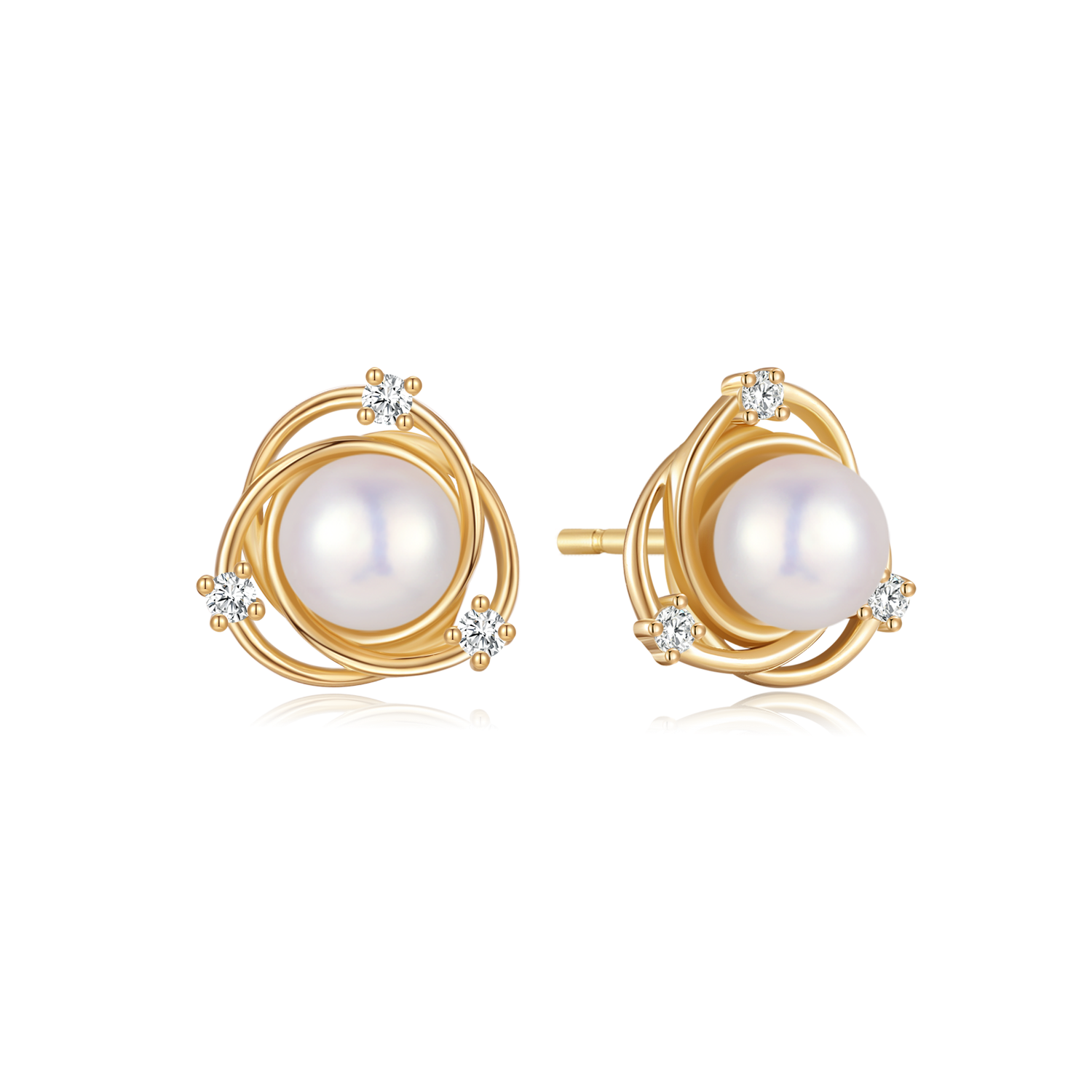 Disse elegante sølvforgyldte ørestikker har et smukt og tidløst design med en flettet cirkel, der symboliserer sammenhæng og harmoni. I midten sidder en rund ferskvandsperle, omgivet af funklende syntetiske cubic zirconia, som tilfører et strejf af luksus. Den varme forgyldte glans fremhæver perlens naturlige skønhed og gør disse ørestikker perfekte til både hverdagsbrug og festlige lejligheder.