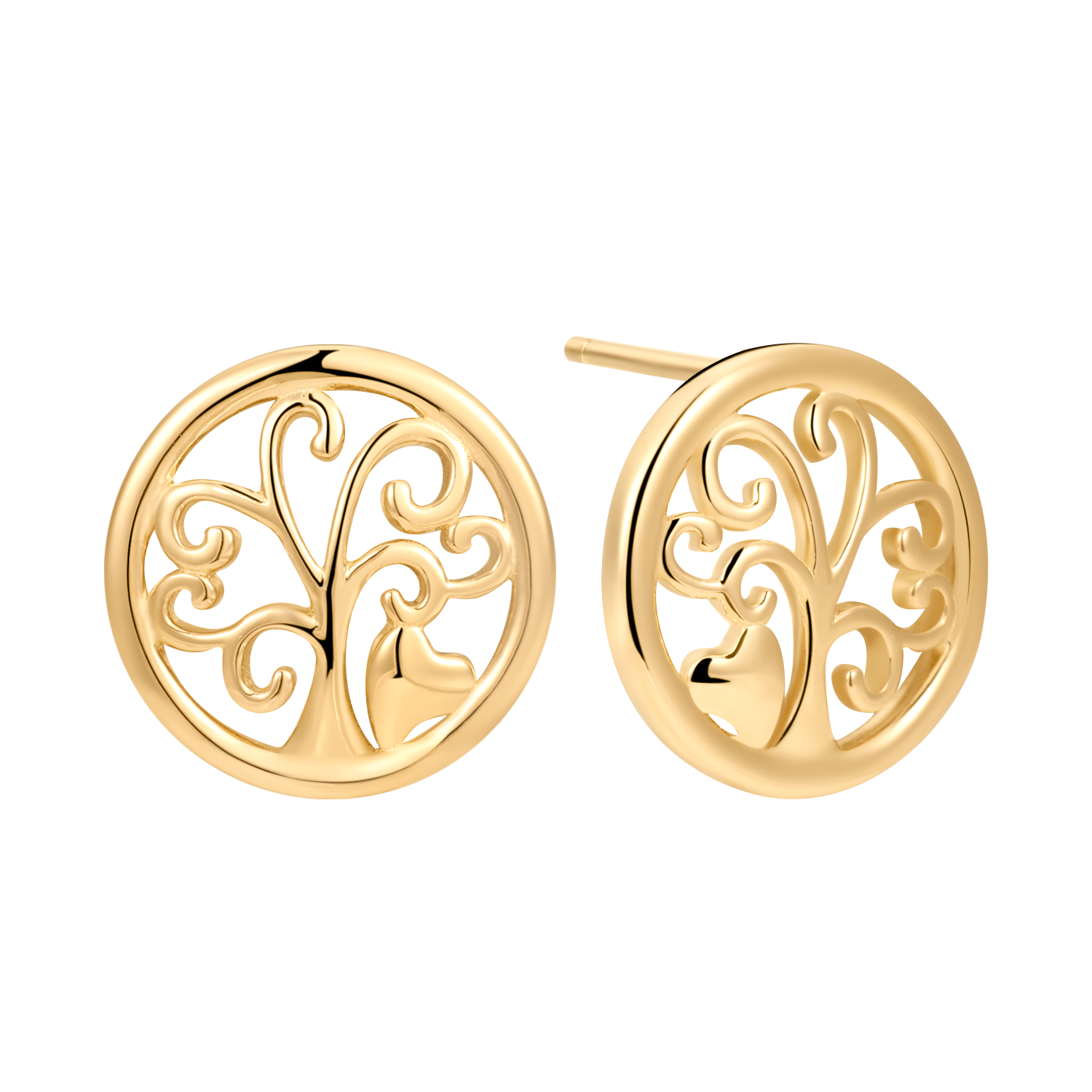 Disse smukke sølvforgyldte ørestikker er designet som en cirkel med motivet af livets træ og et lille hjerte, der symboliserer styrke, kærlighed og balance. Det detaljerede design kombineret med den varme forgyldte glans giver et elegant og betydningsfuldt udtryk. Ørestikkerne er perfekte som en personlig gave eller som et stilfuldt smykke til både hverdag og særlige lejligheder.