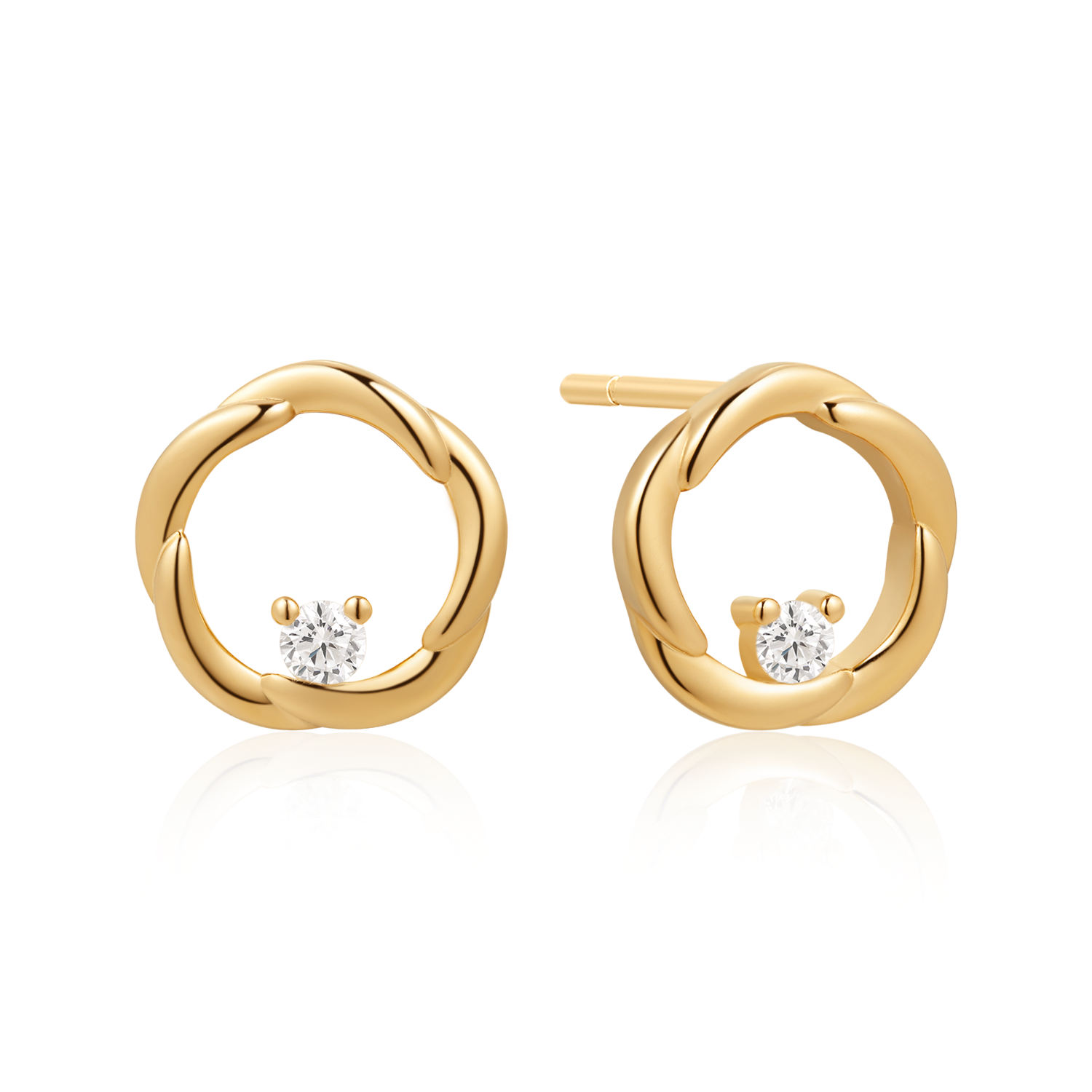 Disse elegante sølvforgyldte ørestikker har et smukt, tidløst design med en flettet cirkel, der symboliserer harmoni og sammenhold. Ørestikkerne er dekoreret med funklende syntetiske cubic zirconia, som tilføjer et strejf af luksus og glans. Den varme forgyldte overflade fremhæver detaljerne i designet og gør smykket perfekt til både hverdag og festlige anledninger.
