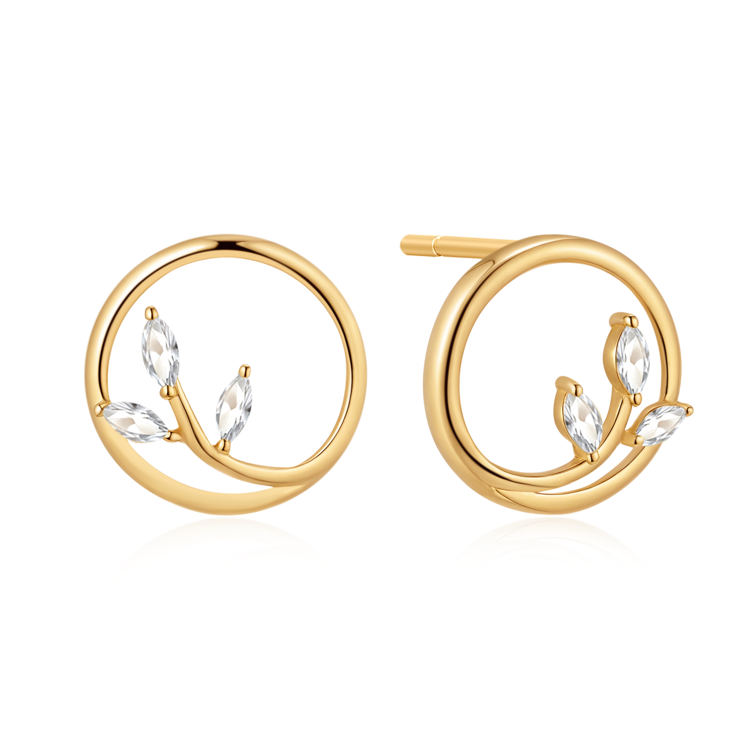 Disse elegante sølvforgyldte ørestikker kombinerer klassisk finesse med naturlig skønhed. Designet består af en flettet cirkel med en smuk plade af perlemor, der giver et blødt og eksklusivt udtryk. En dekorativ gren med funklende syntetiske cubic zirconia tilfører glans og elegance. Ørestikkerne er perfekte til både hverdagsbrug og særlige lejligheder, hvor et feminint og sofistikeret look ønskes.